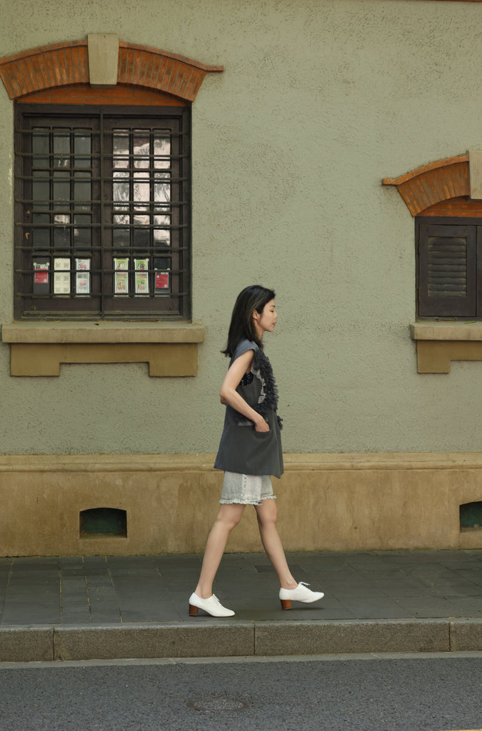 Embrace the enduring elegance of our knee-length coat, expertly crafted from a luxurious Italian wool and cashmere blend. This soft and fuzzy coat features a captivating pleated ruffle down the centre of the front and a patterned scarf. Its modern cocoon shape, open front, and stitched detail side seam pockets merge comfort with style. Definitely your timeless companion for chilly seasons.