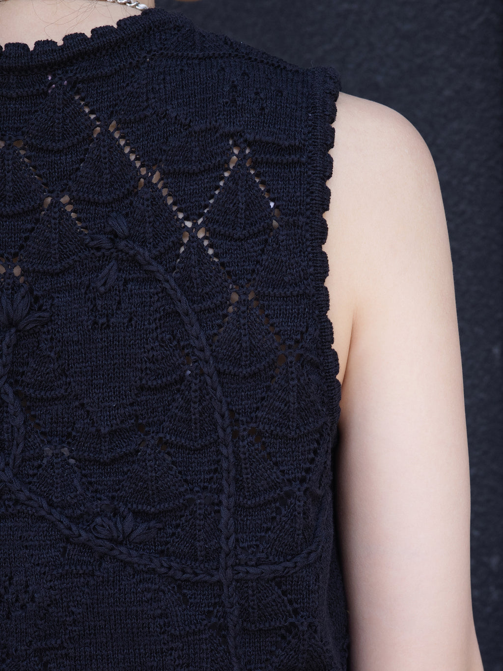 Black Handknit Crochet Texture Floral Diamond Pattern Tank
