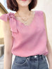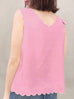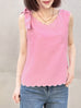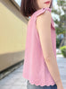 Final Sale! Pink Scallop V-neck Silk Tank With Removable Bow