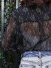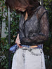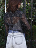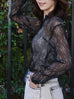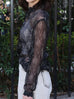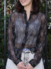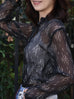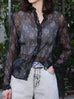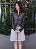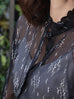 Black Print Tonal Scallop-Stitched Detail Silk Blouse