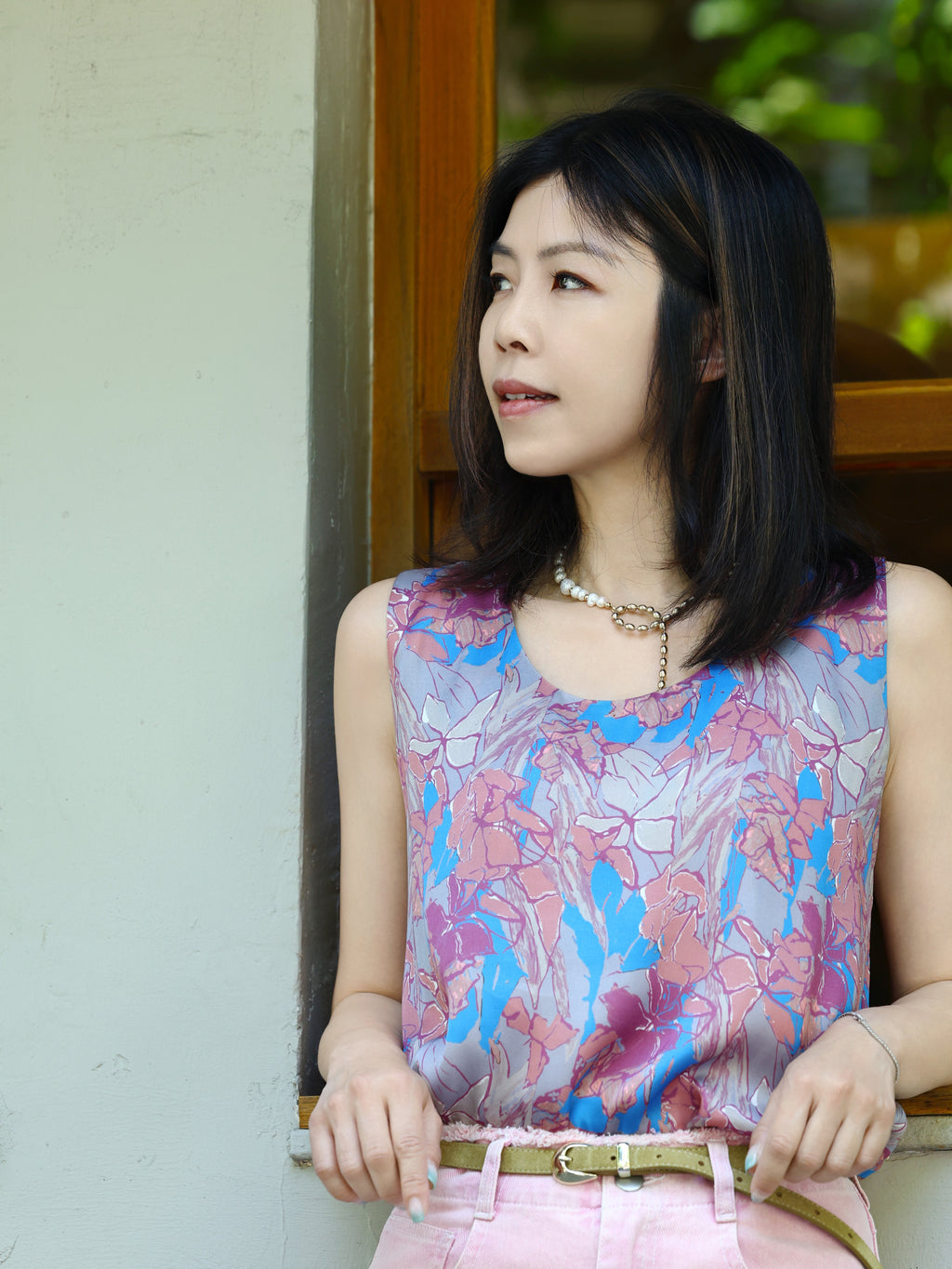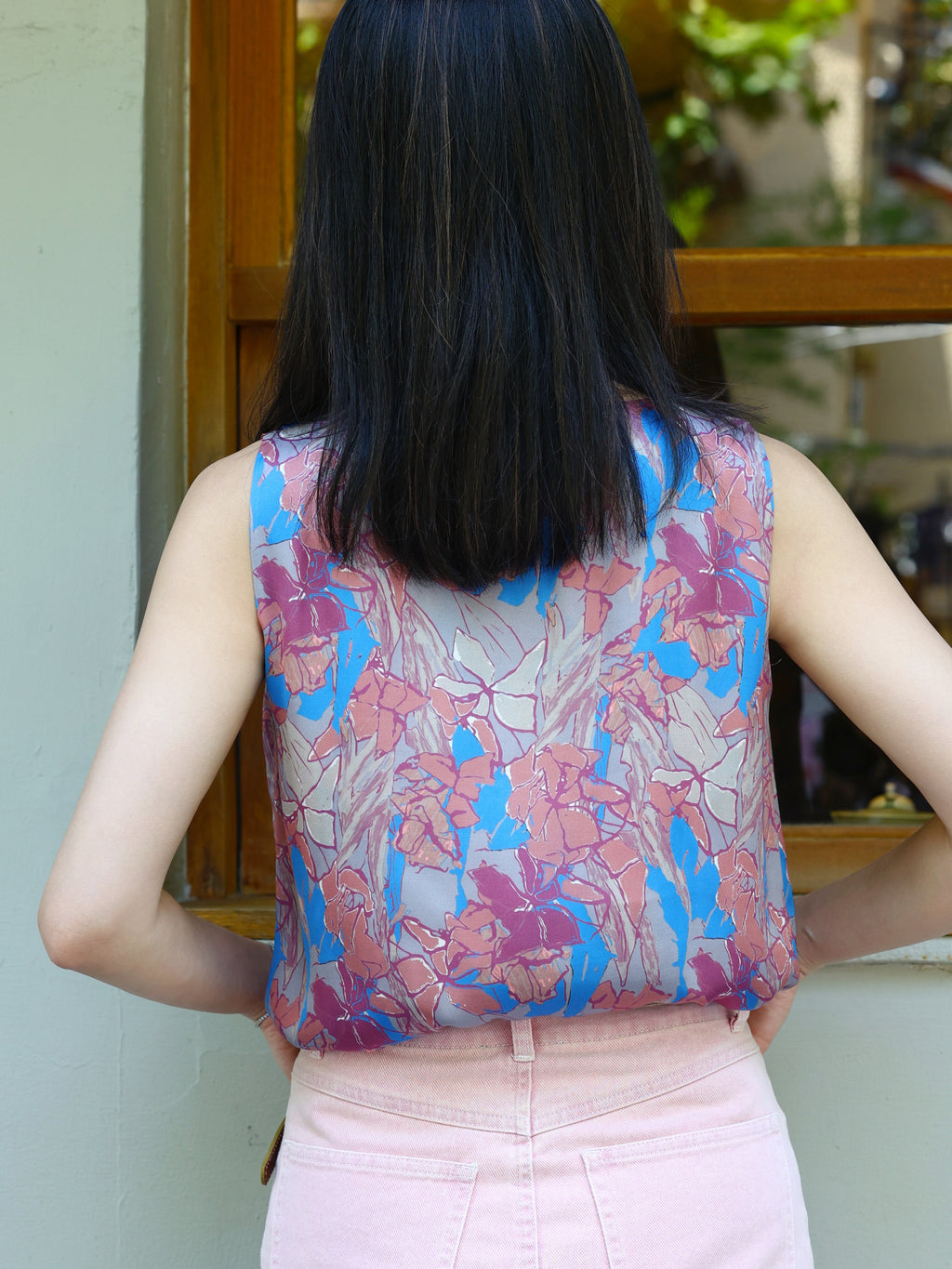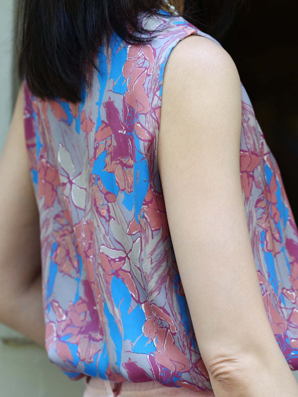 An essential from our signature silk tank collection, this scoop-neck design blends ease with elegance in a fluid, softly draped silhouette. Finished with contrast binding for an inside-out detail, its luminous satin texture feels weightless against the skin—perfect for steamy days and polished looks alike. Available in rust red, sky blue, and blue flora print.
