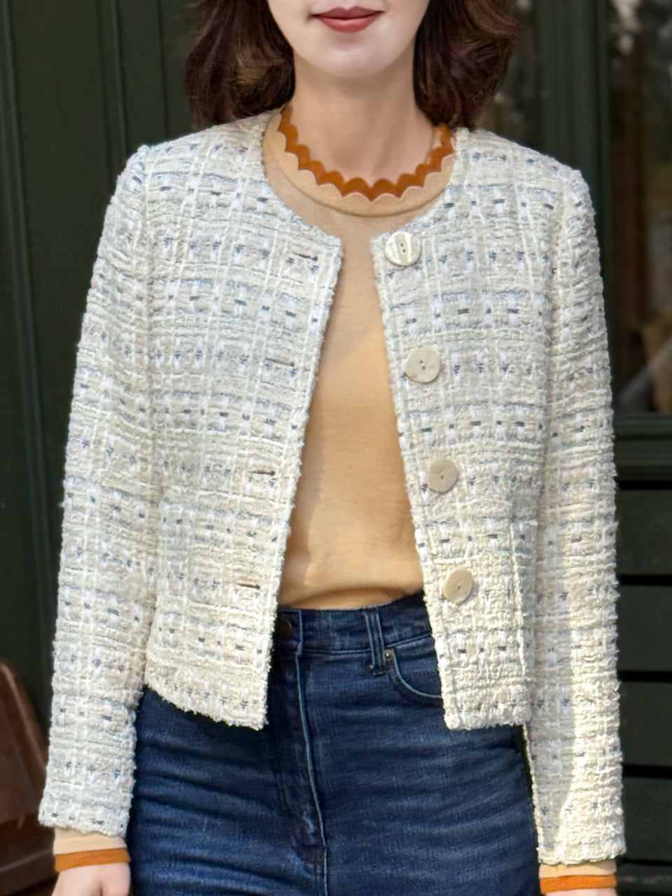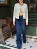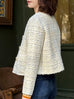 Surprise Sale! Creamy White Button Front Boxy Bouclè Tweed Crop Jacket
