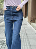 Welcome the new season with your new fave jean - seamlessly combining classic and trendy elements. Crafted with a darker retro-inspired mid wash, this pair boasts a flattering flare style, meticulous logo embroidery on the back pocket, and a touch of sophistication. Its slightly elastic fabric ensures both style and comfort, making it a stylish tribute to timeless denim fashion that you'll wear more than you can imagine.