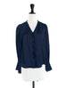 Surprise Sale! Dark Navy Mesh Trimmed Ruffle V-neck Silky Blouse