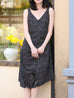 This sleeveless V-neck dress features a dreamy watercolour floral print and playful ruching along the hem for a gathered, flirty silhouette. Its silky sheen and soft drape bring out the femininity in every move, while the adjustable crunch detail adds texture and charm. A standout piece for warm days with effortless style.
