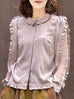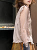 Our signature layered-sleeve silky blouse radiates romantic charm with delicate tonal mesh panels and cascading ruffles. The mesh-layered sleeves split into flowing frilled ruffles, with matching accents gracing the collar and hemline. Crafted from luxuriously soft silky fabric, this blouse features covered buttons and a hidden placket, making it a refined choice for both work and evening wear.