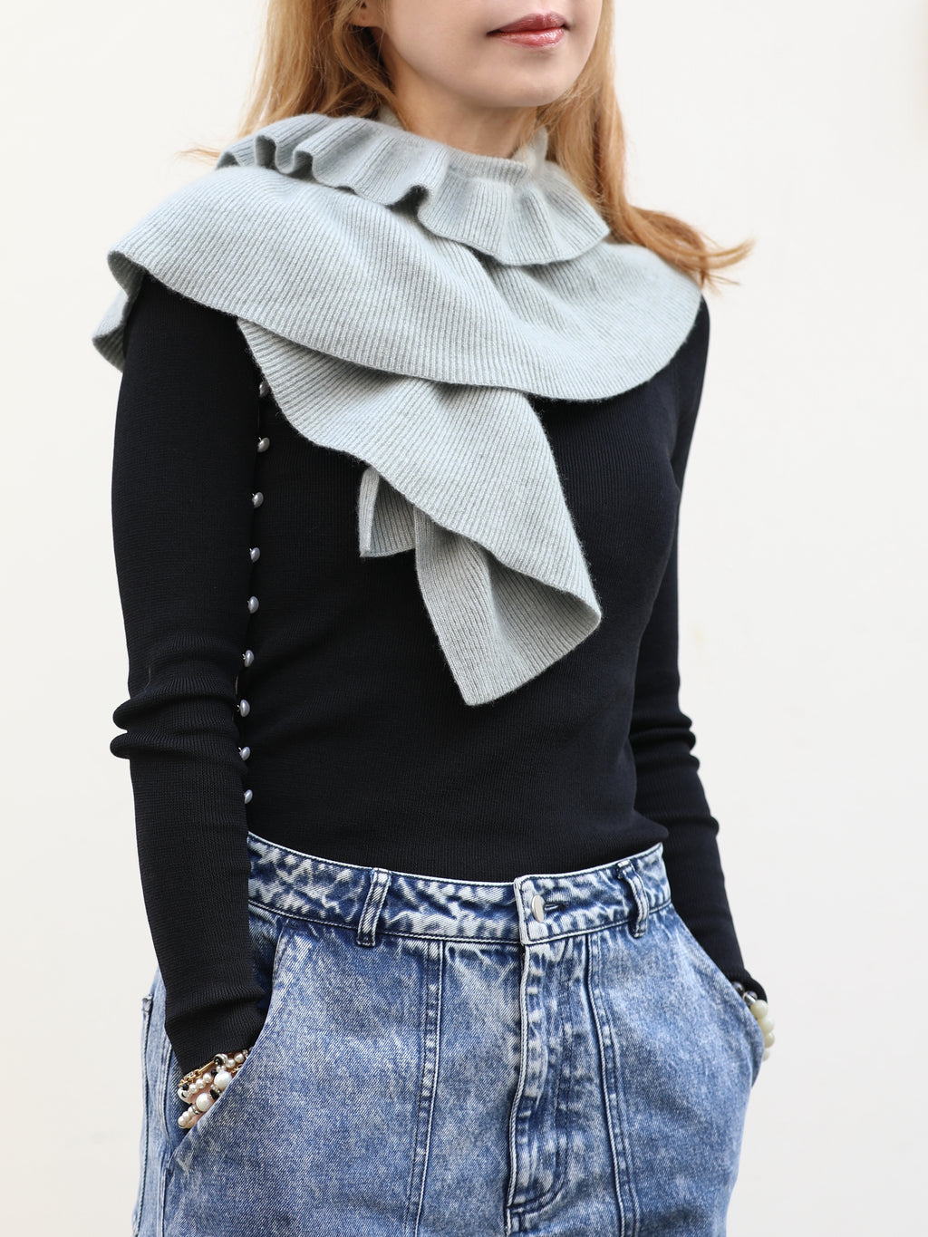 Greyish Green Luxe Cashmere Ruffle Collar Wrap