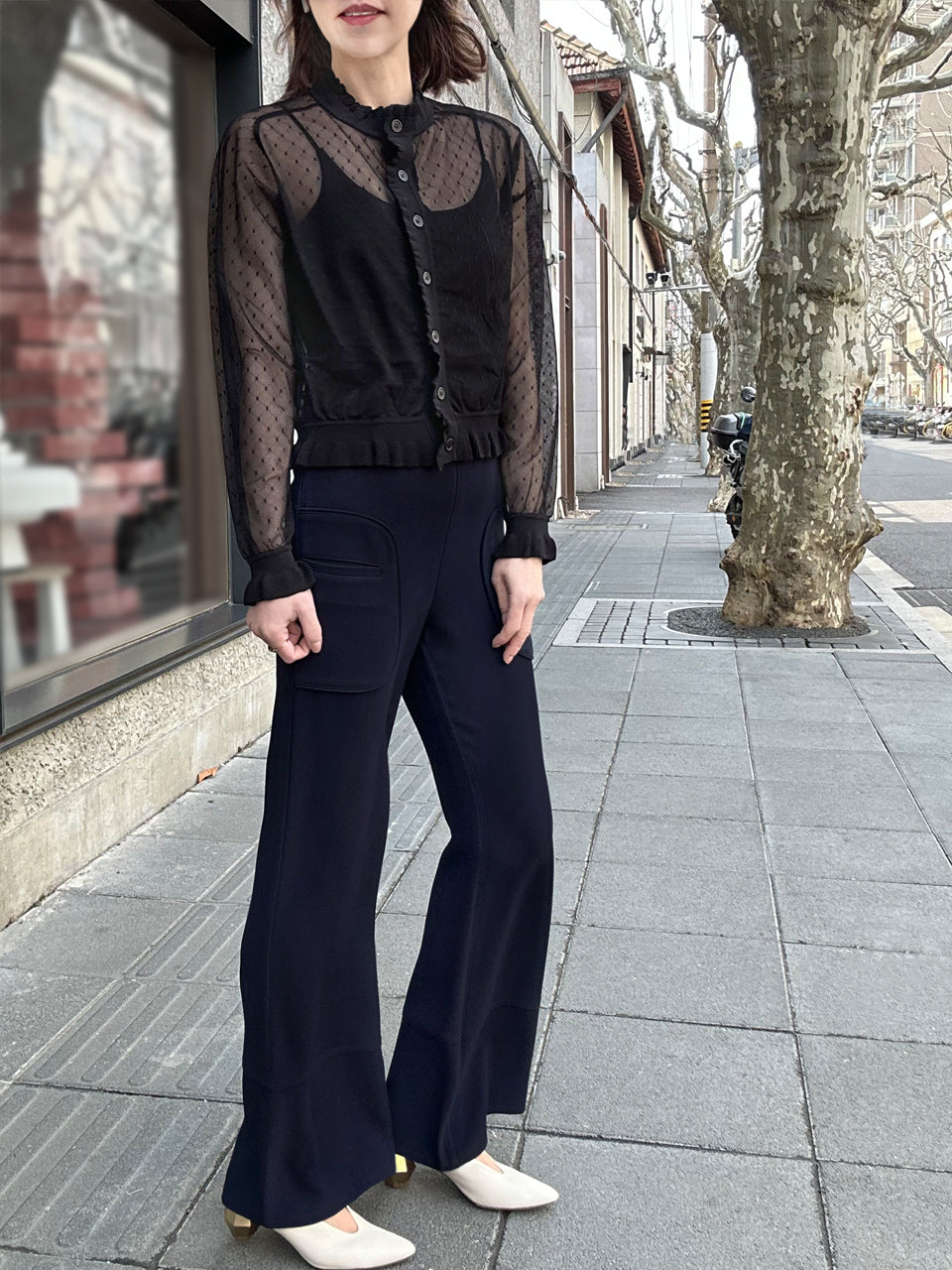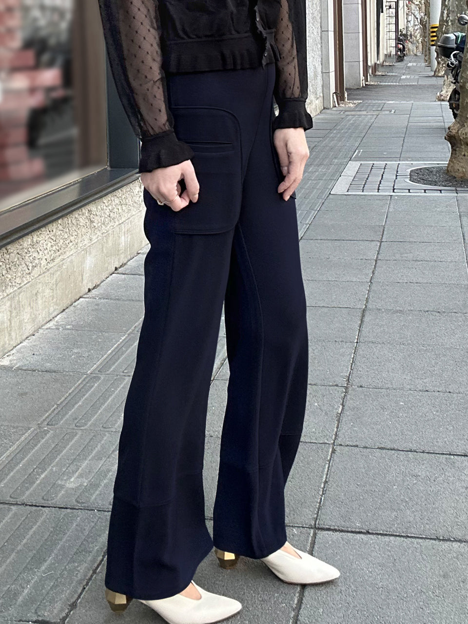Modern Navy Patch Pocket Tonal Stitch Canvas Pants
