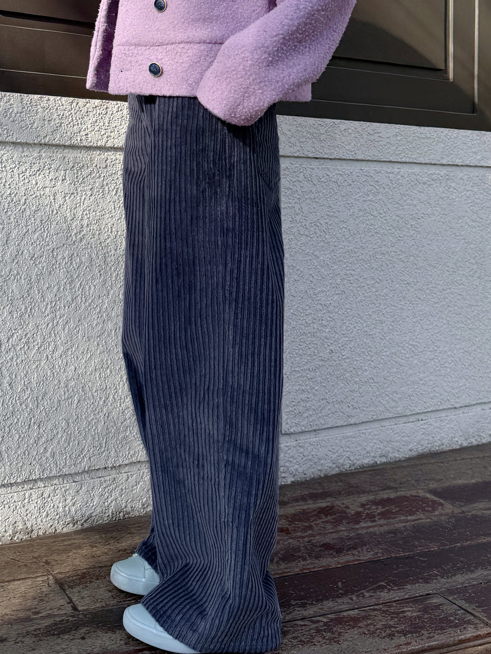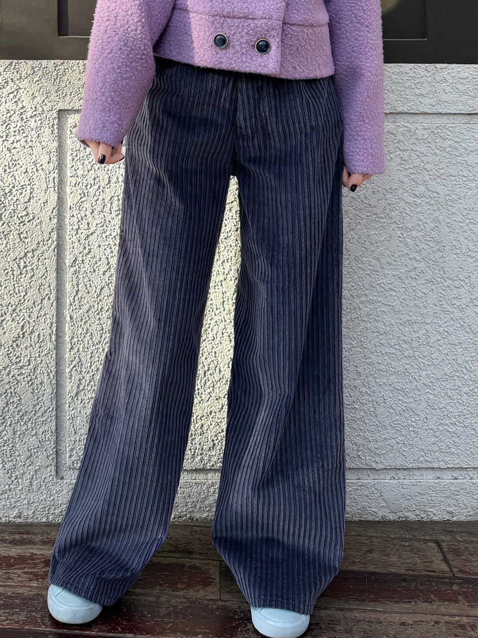 Surprise Sale! Mystic Navy Cotton Blend Corduroy Wide-Leg Trousers