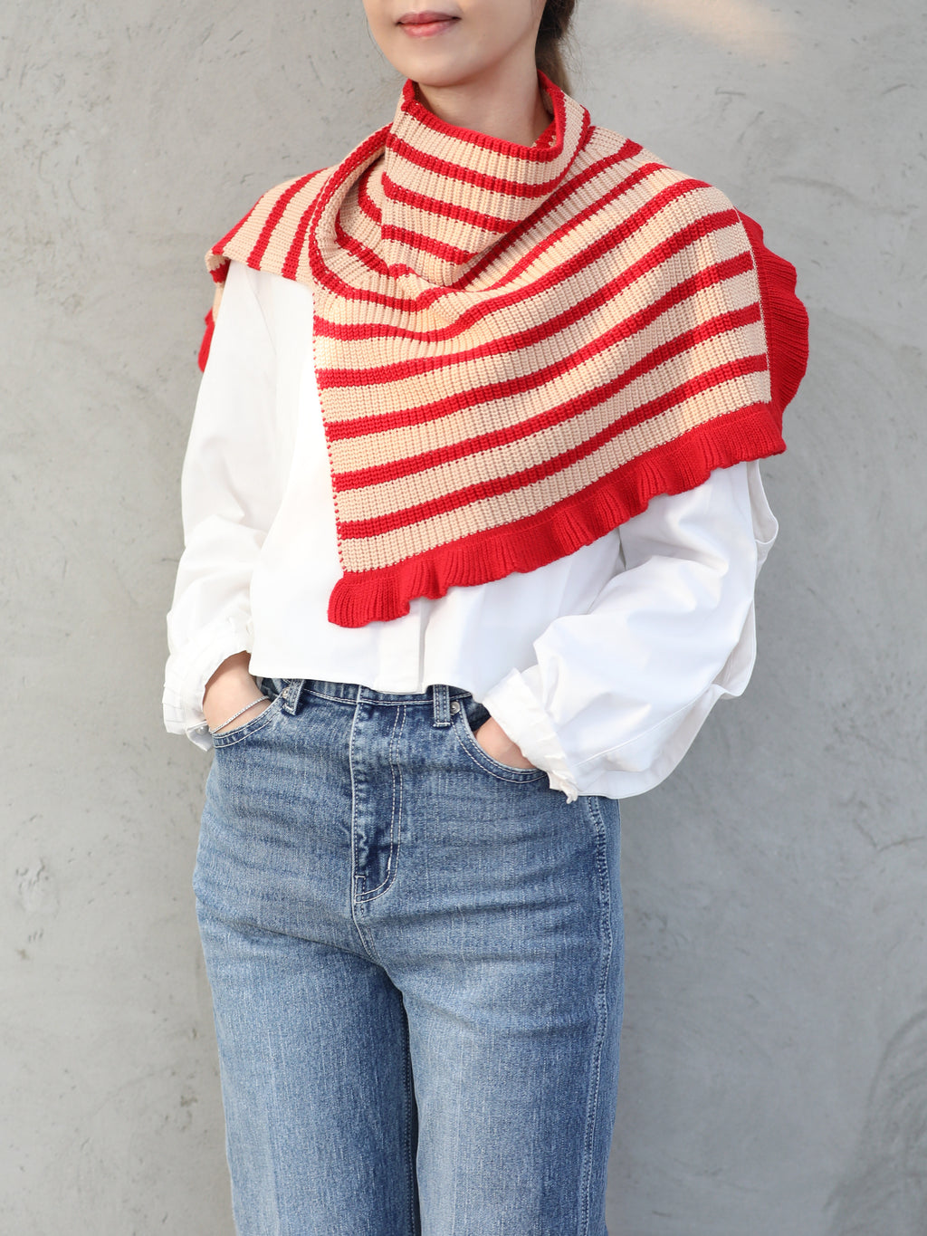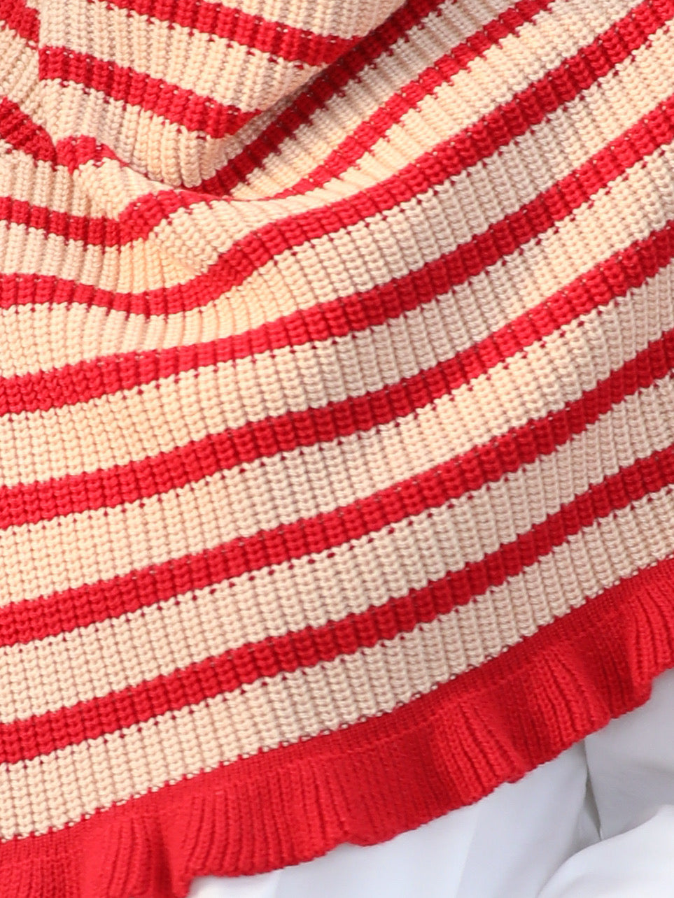 New colour! Red Stripes Ruffle Trims High Neck Knitted Cape Warmer