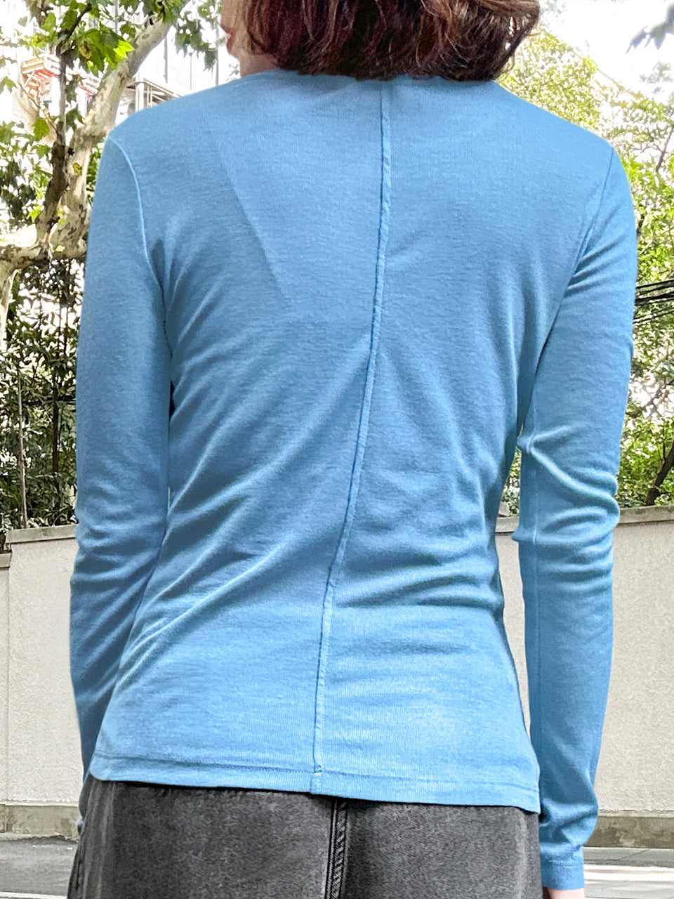 Our signature minimalistic design essential jumper: features a seam down the back, offering a clean, versatile look. Crafted from a cotton blend for lightweight comfort, this slim-fit jumper pairs effortlessly with trousers or skirts, making it a wardrobe staple. Comes in two eye-catching shades: rich plum hue and soft sky blue, both perfect for adding a pop of colour to your wardrobe.