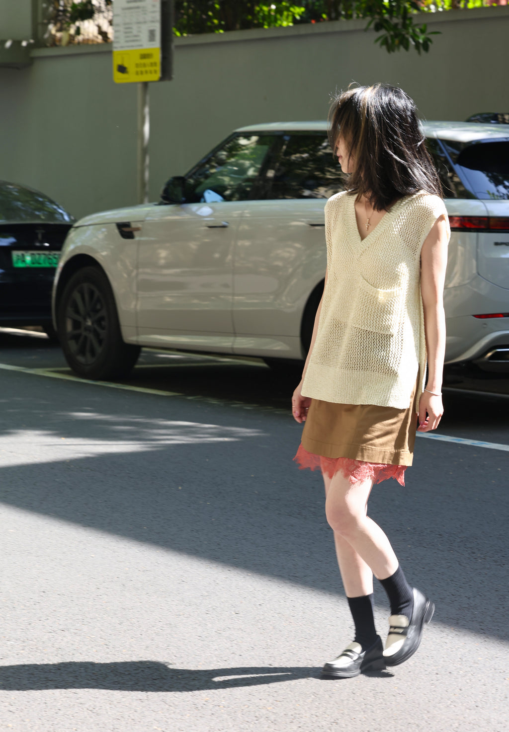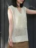 Breezy, light, and perfect for layering – this V-neck tank is your summer go-to. Made with airy double yarns for that extra texture (think two strands knitted together for softness + shape), plus cute pocket detail and side slits for easy movement. Throw it over a vest or dress for effortless style. You’ll reach for it all season!