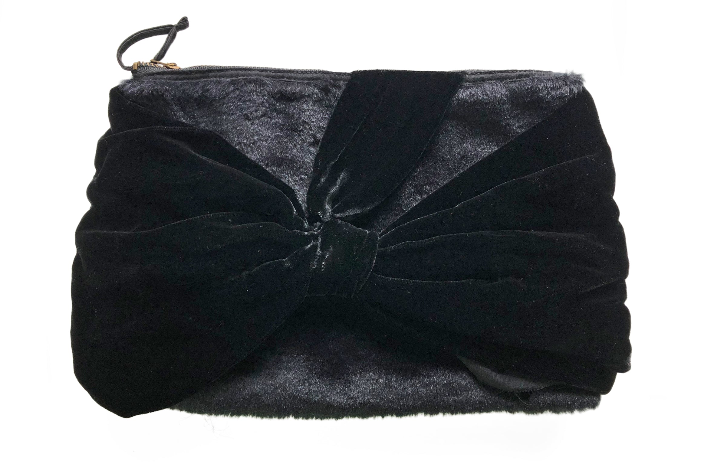 Last Chance! Black Furry Velvety Black Bow Pouch