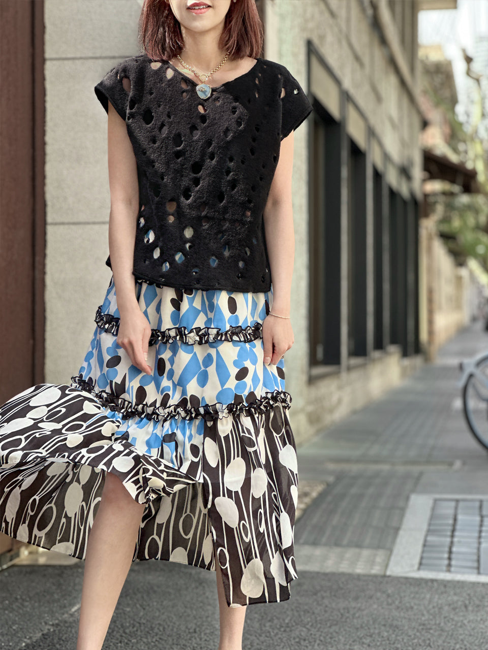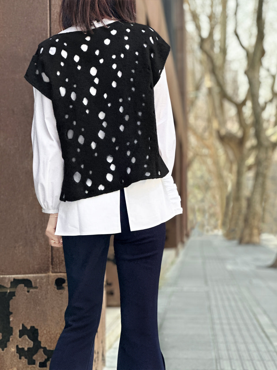Surprise Sale! Black Polka-Dot Felted Relax Fit Woollen Sleeveless Top