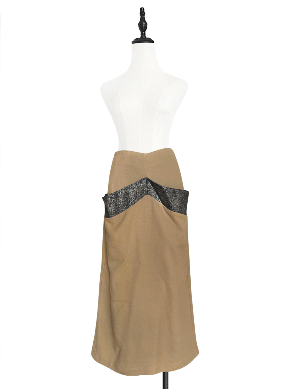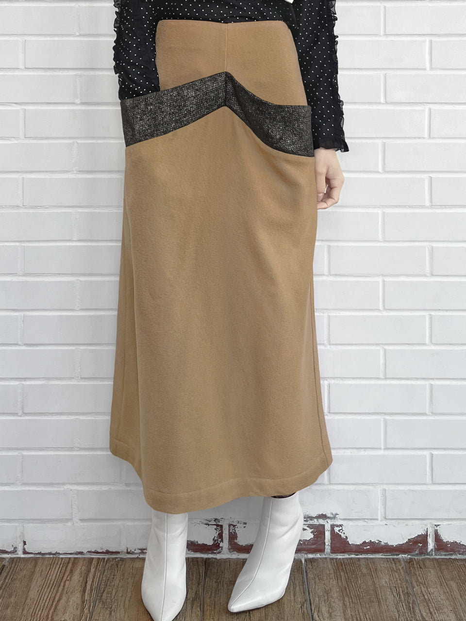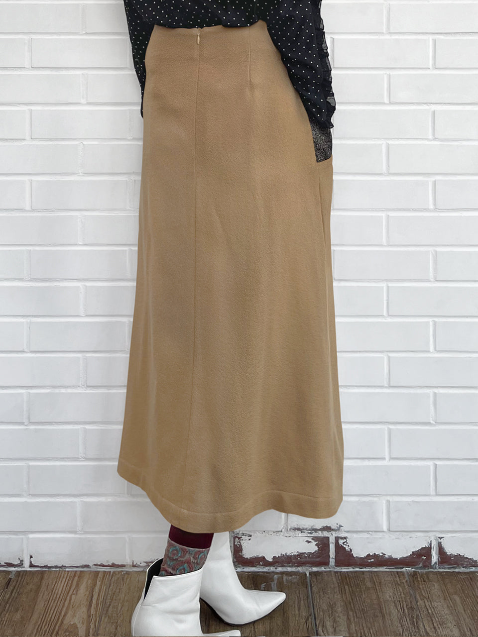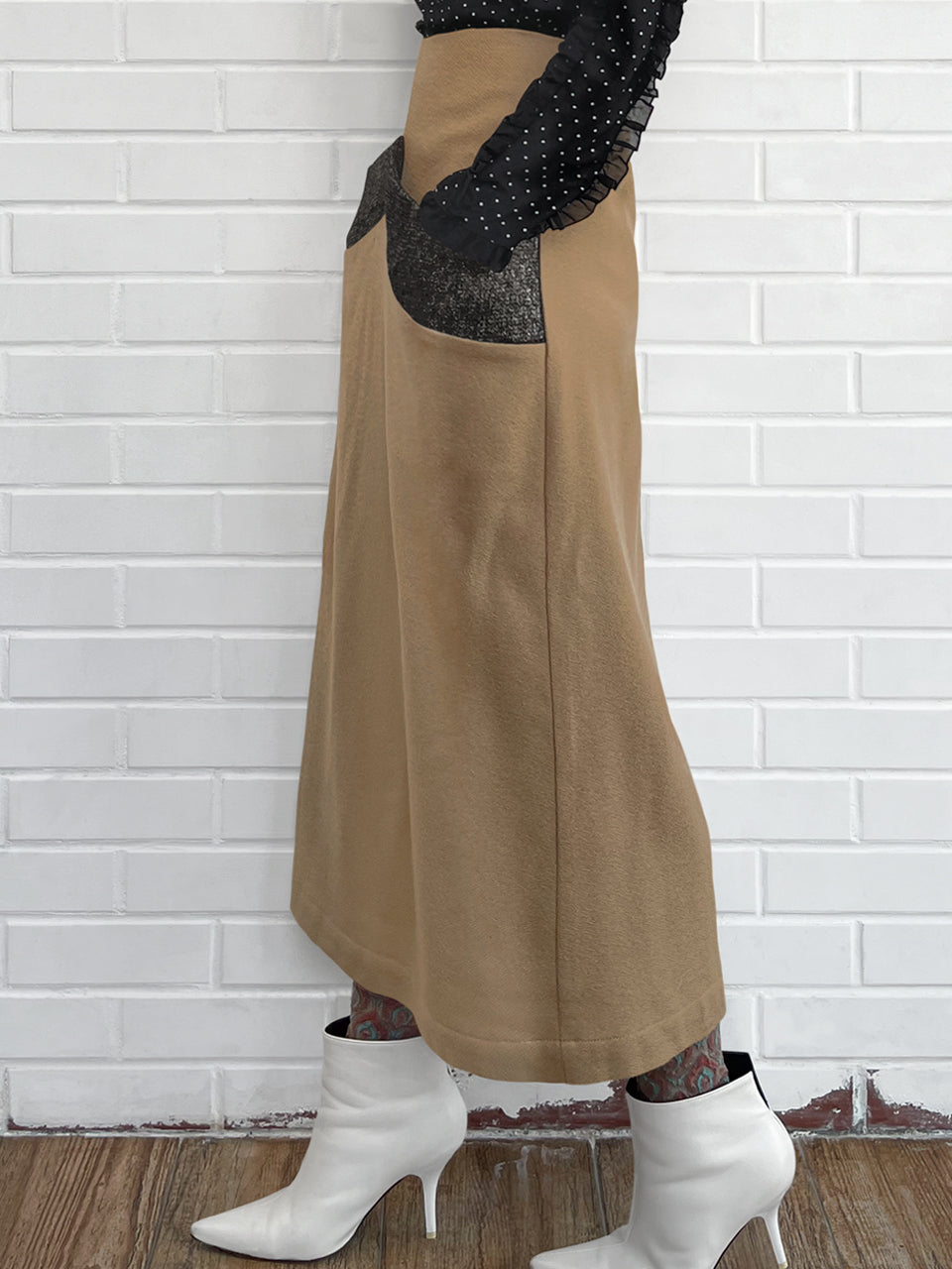Surprise Sale! Camel Pocket Detail A-line Woollen Maxi Skirt