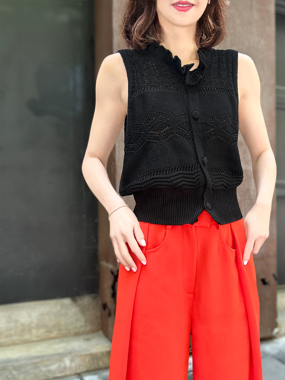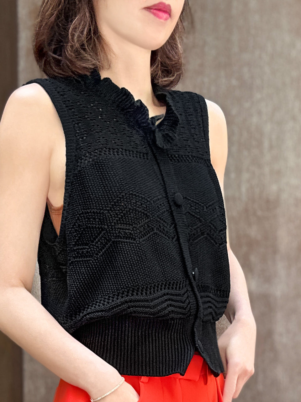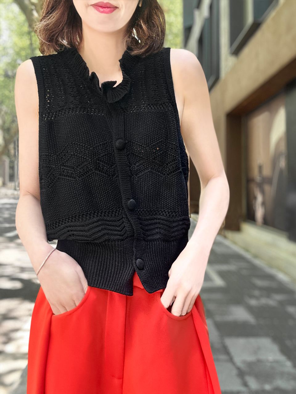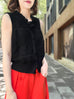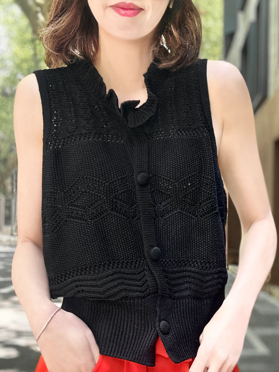 Surprise Sale! Classic Black Ruffle Collar Pattern-stitched Button Front Vest