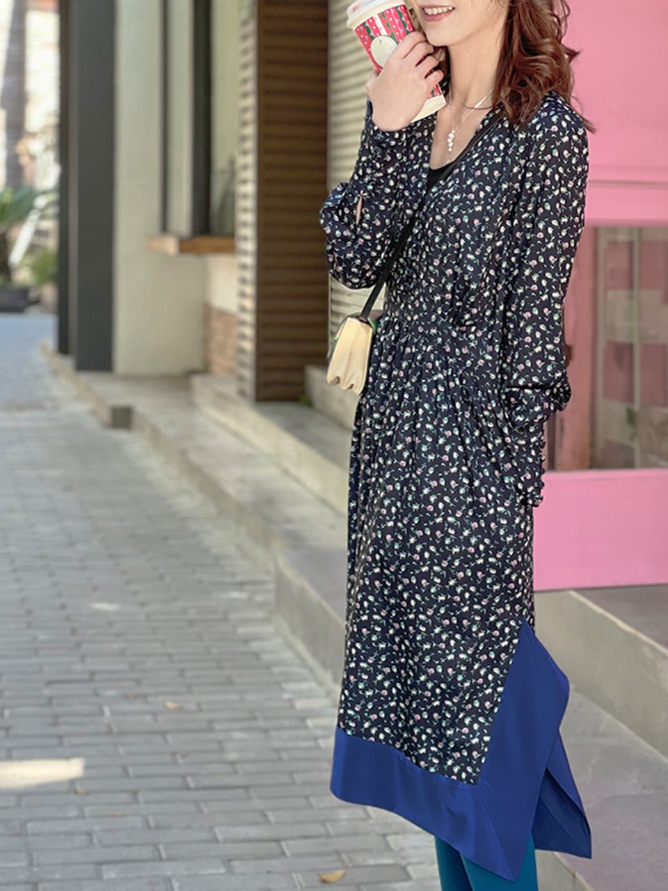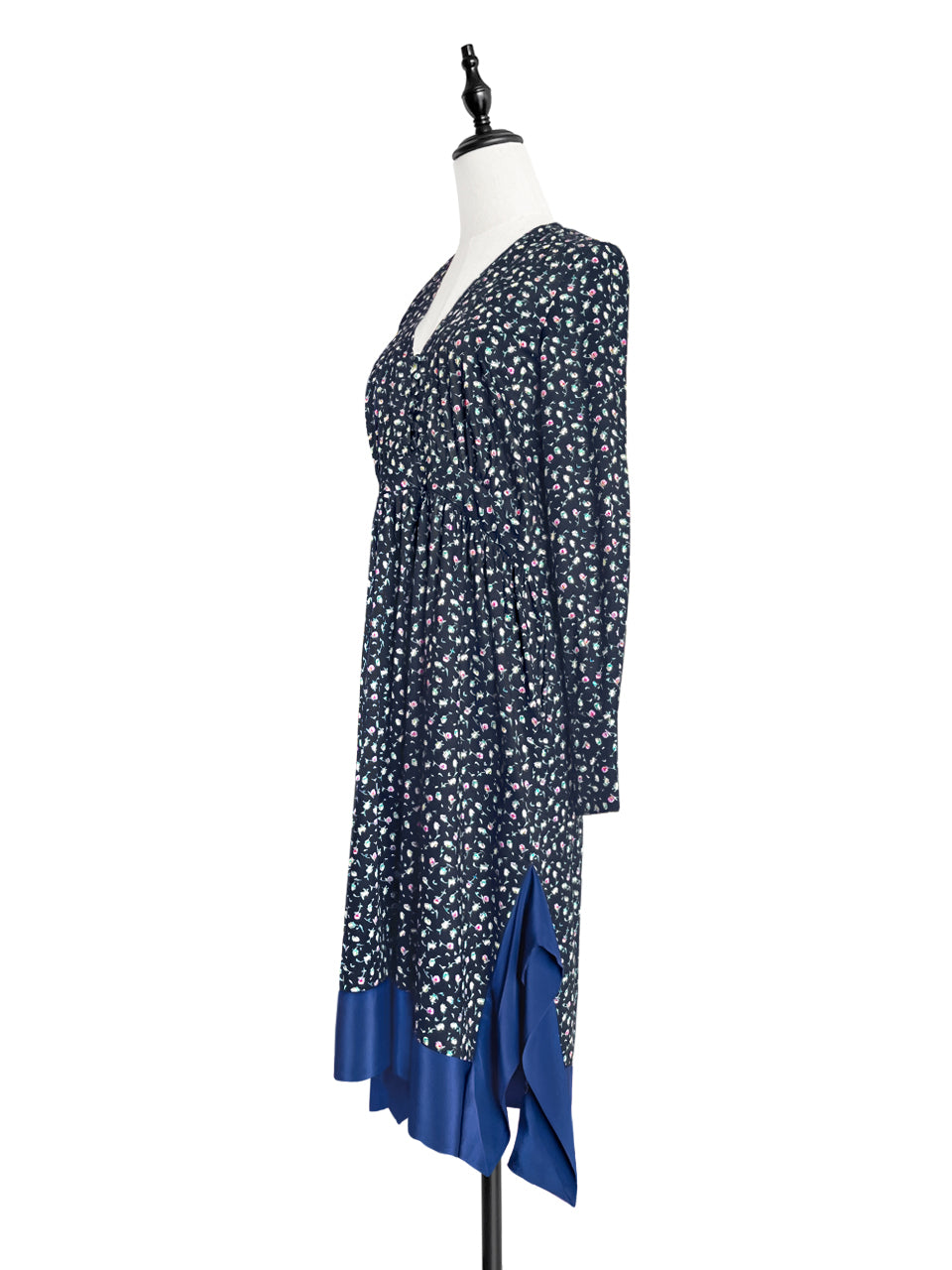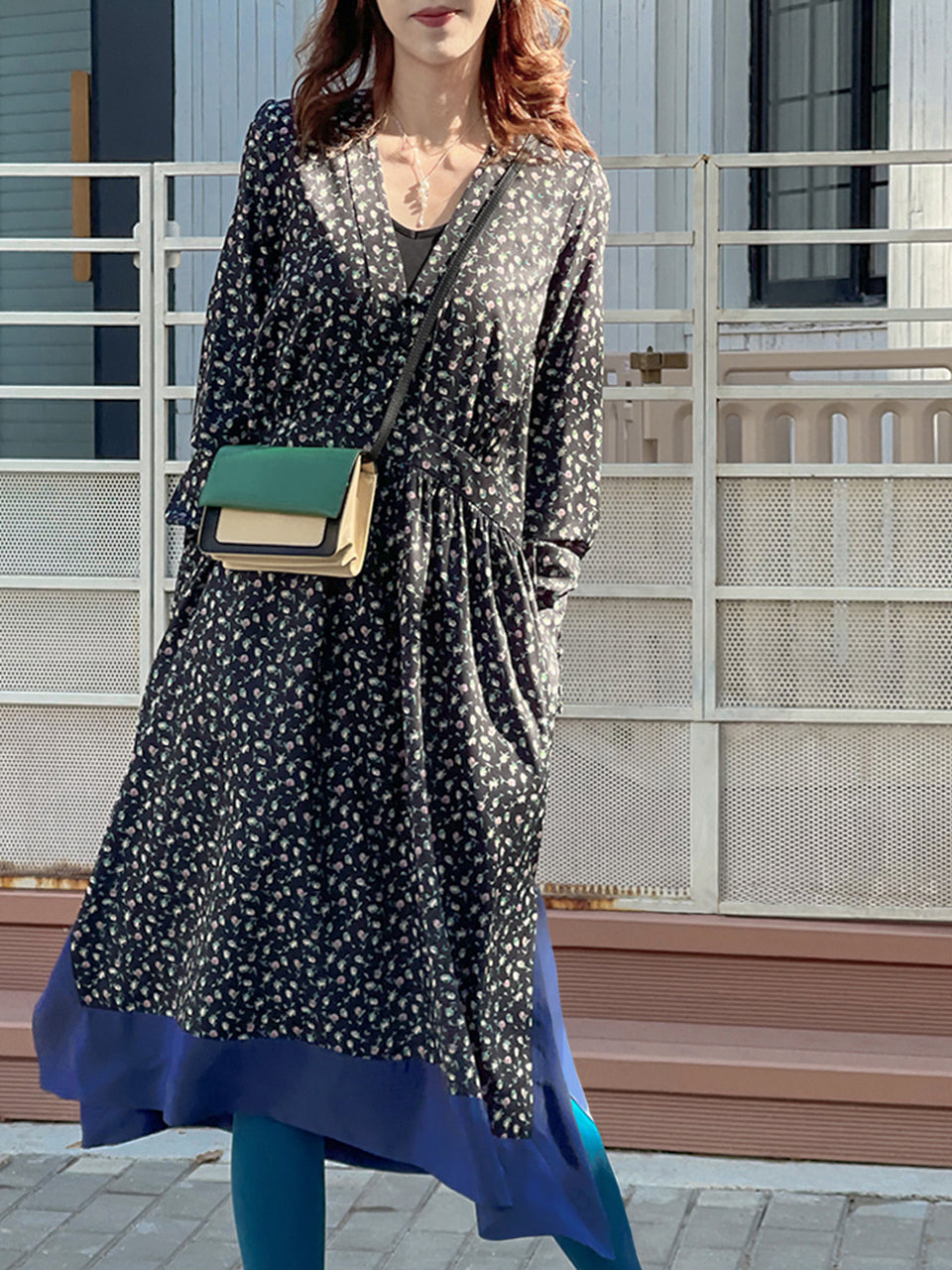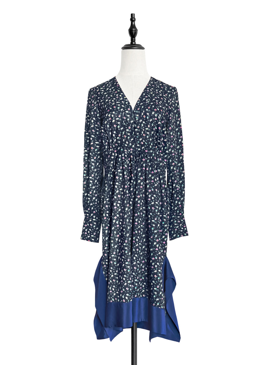 Surprise Sale! Floral-print Silky Panelled V-neck Handkerchief Dress