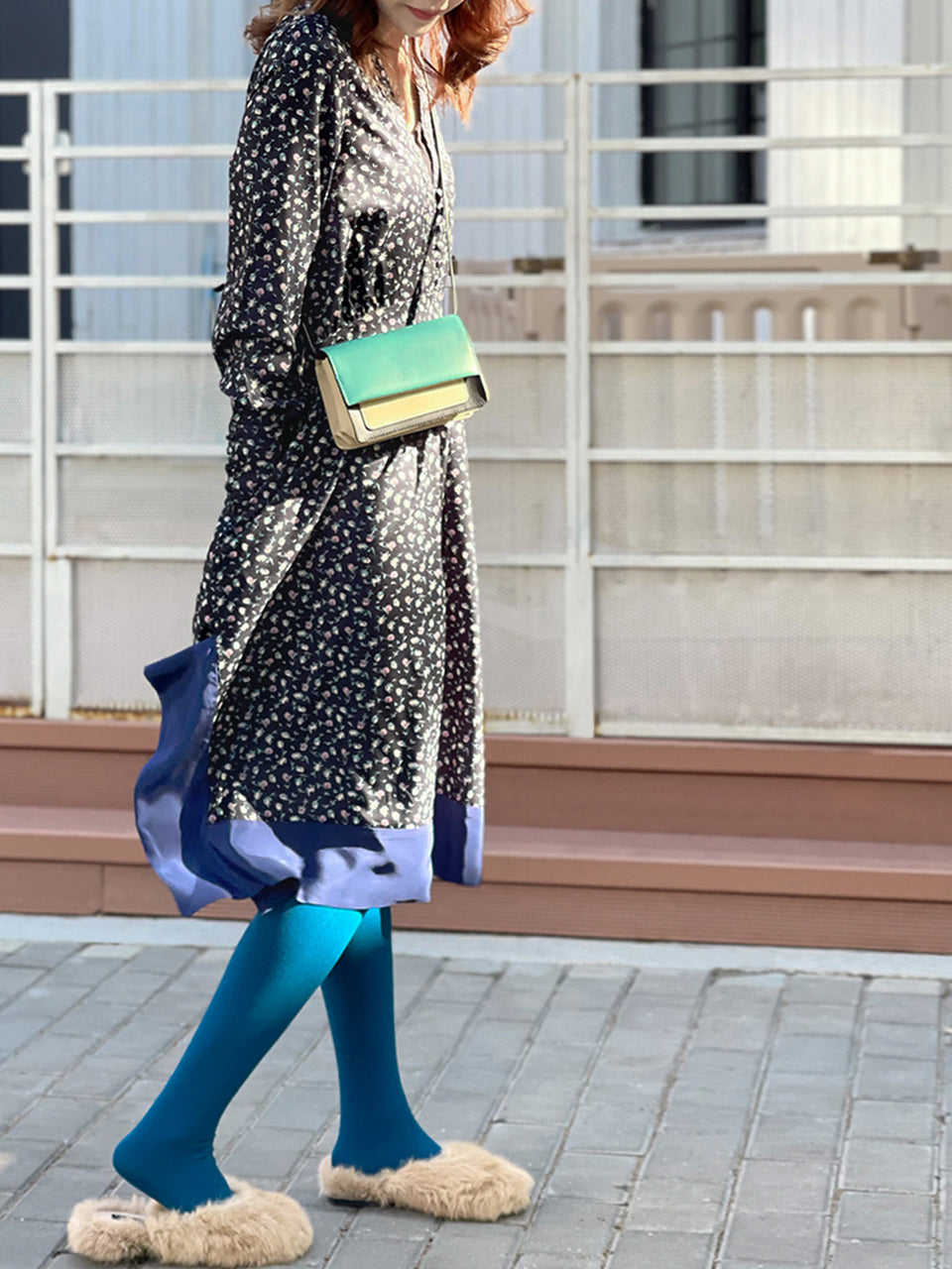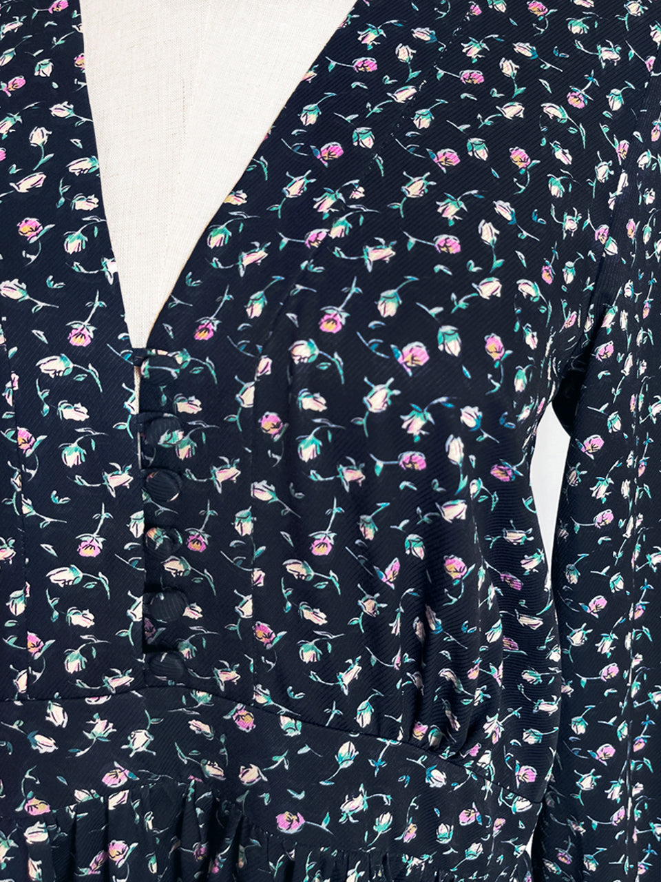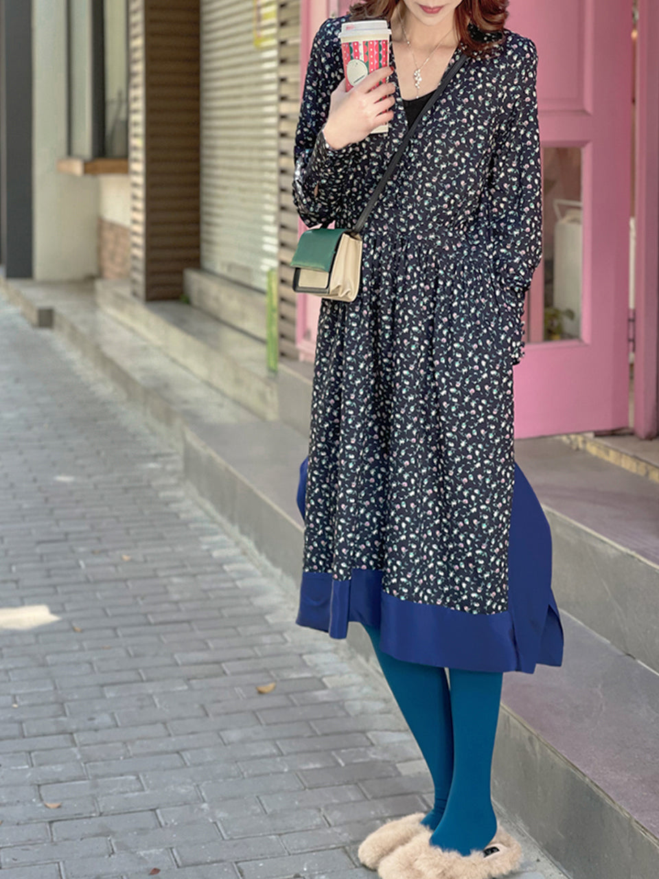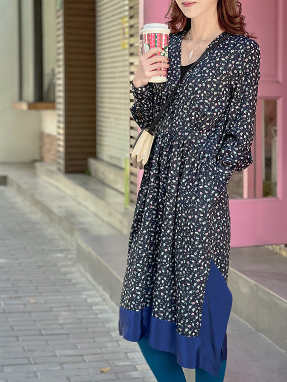 Surprise Sale! Floral-print Silky Panelled V-neck Handkerchief Dress