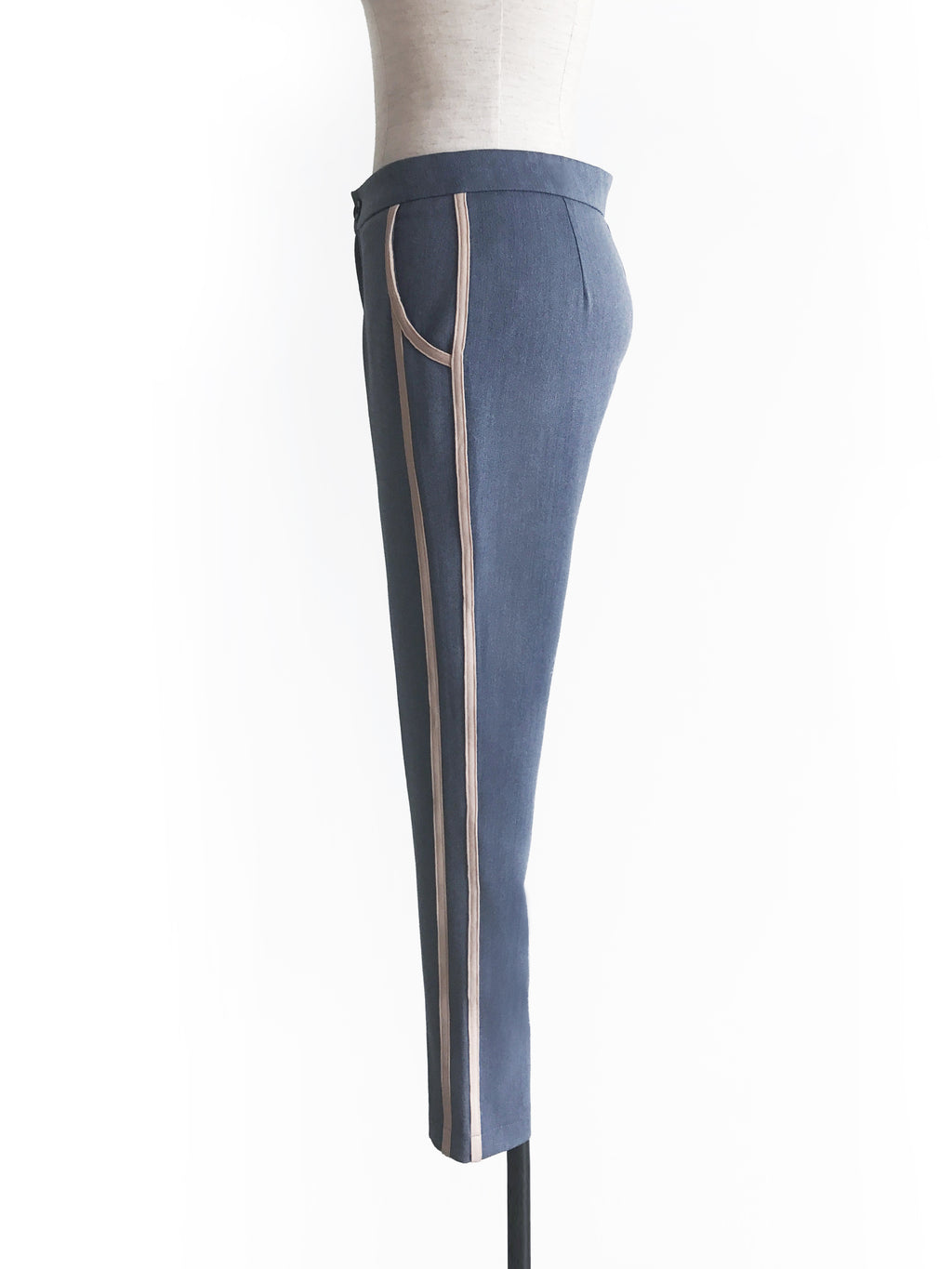 SPECIAL! Grey Side Ribbed Trims Skinny Trousers