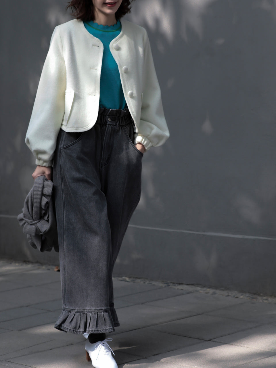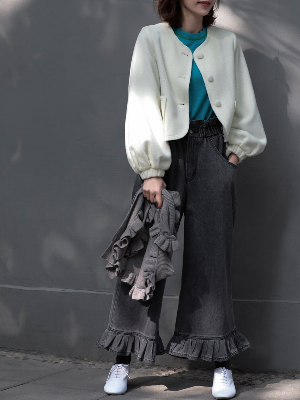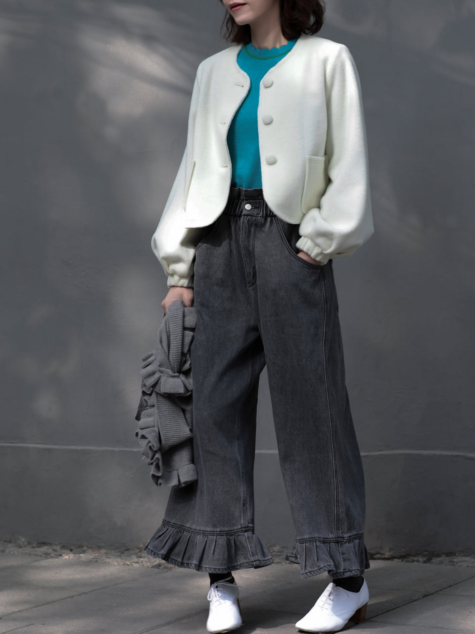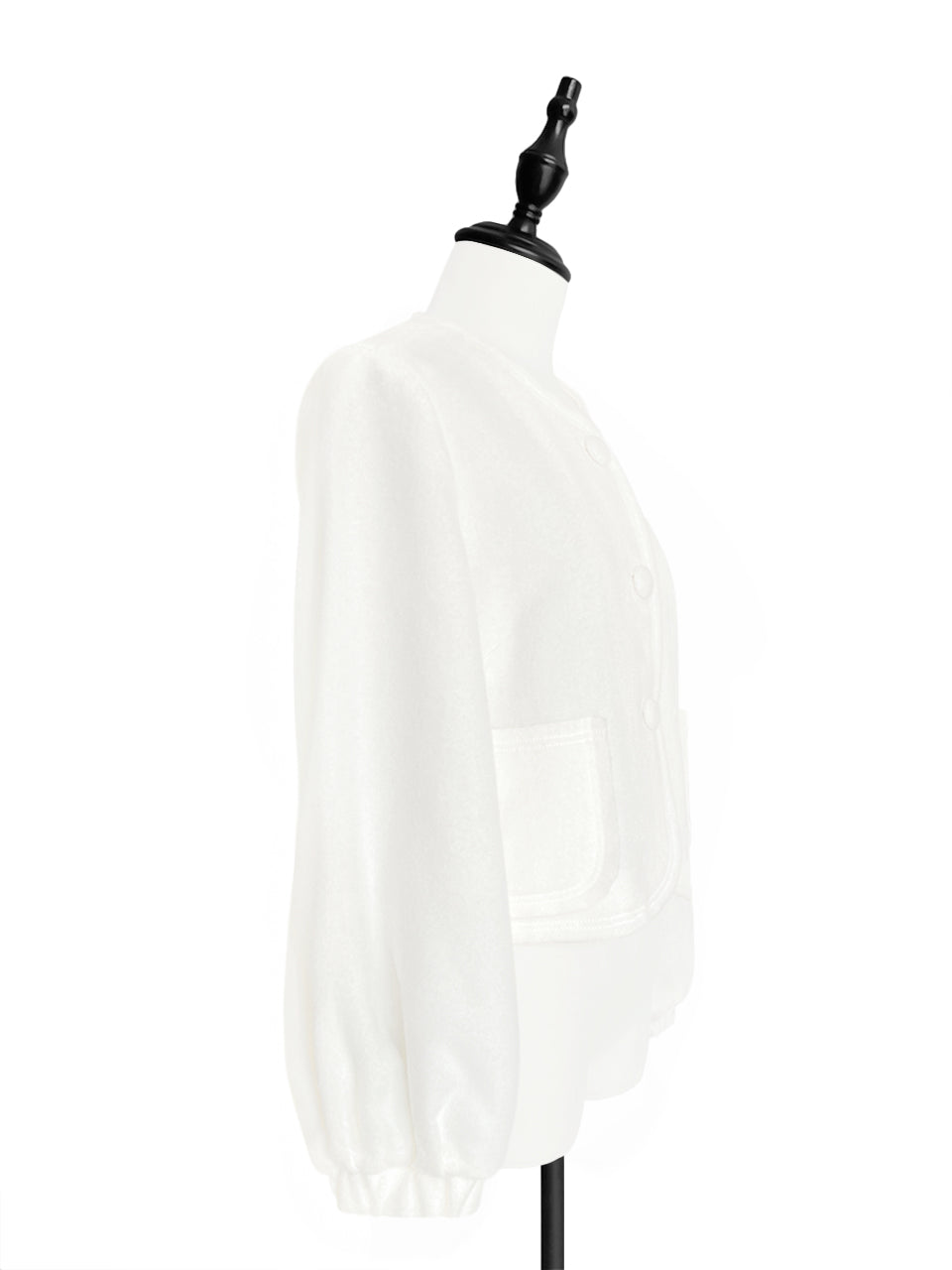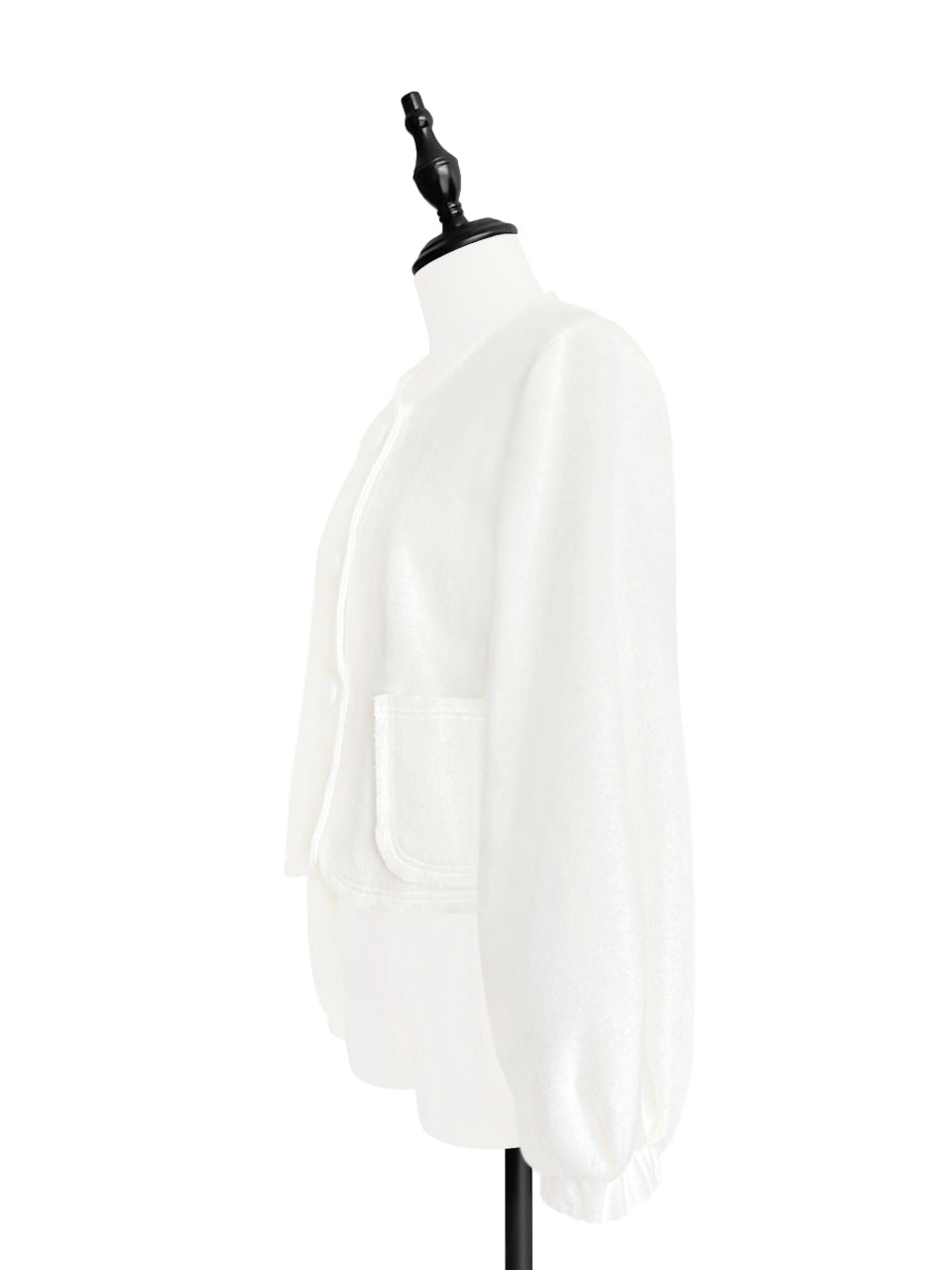 Surprise Sale! Ivory White Balloon Sleeve Button Front Wool Blend Jacket!