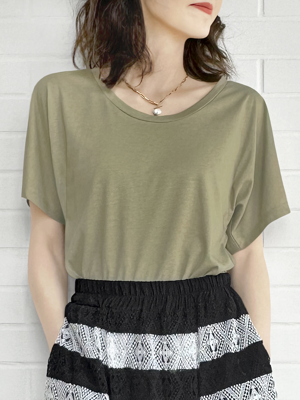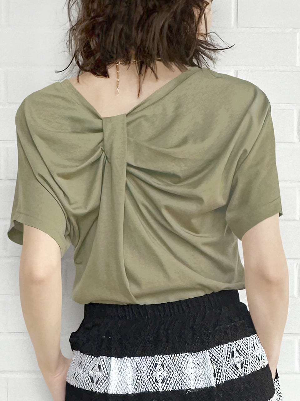 SPECIAL! Olive Green Bow Detail Front/ back 2-Way Tee