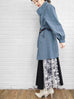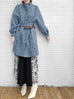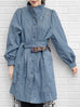 It's no secret longline coat is classy, but it's also a showstopper. Made from 80% cotton denim with printed piping, it has a flattering, relaxed fit, so it's incredibly easy to wear. Designed with roomy balloon sleeves, side pockets, and piping-match removable ruffled belt. We're calling it the ultimate style investment. Available in this pinstriped denim crinkle white.