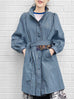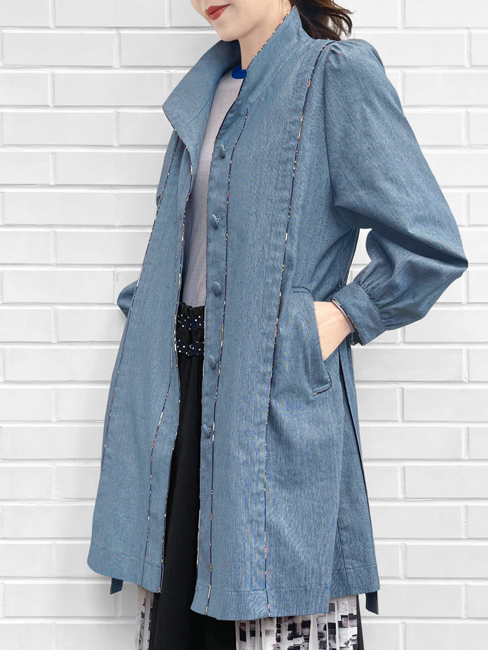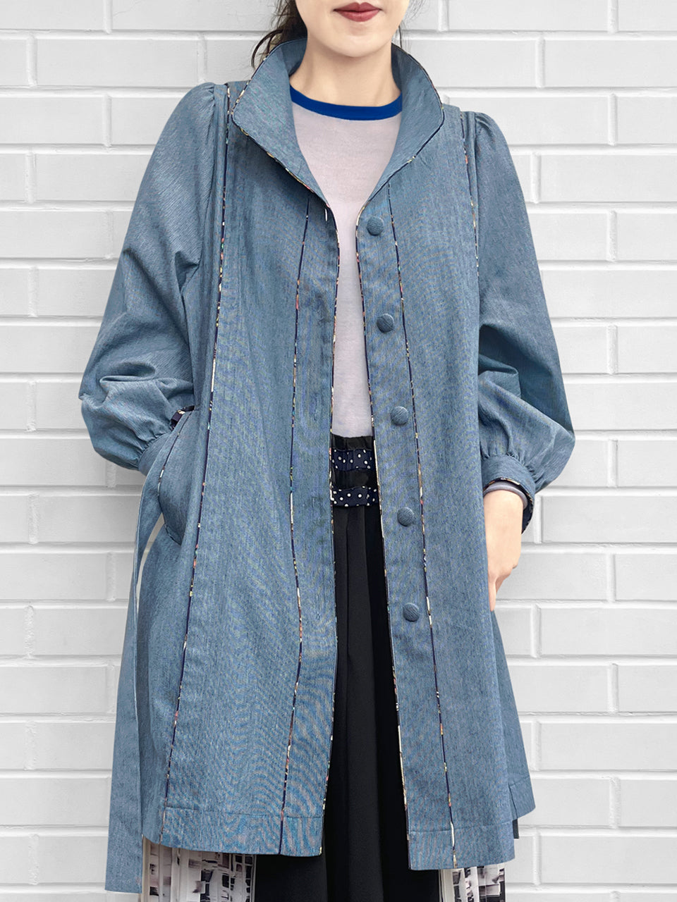 Last Chance! Pinstripe Denim Deer Piping Belted Longline Cotton Blended Coat