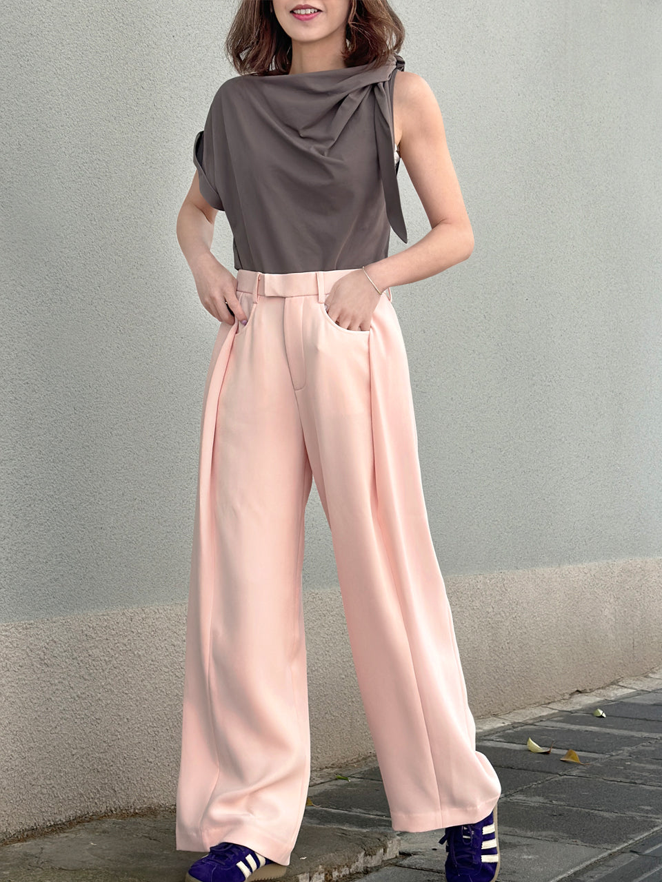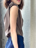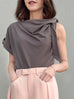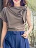 Surprise Sale! Taupe Grey Asymmetric Tie Knot Detail Boat Neck Tee