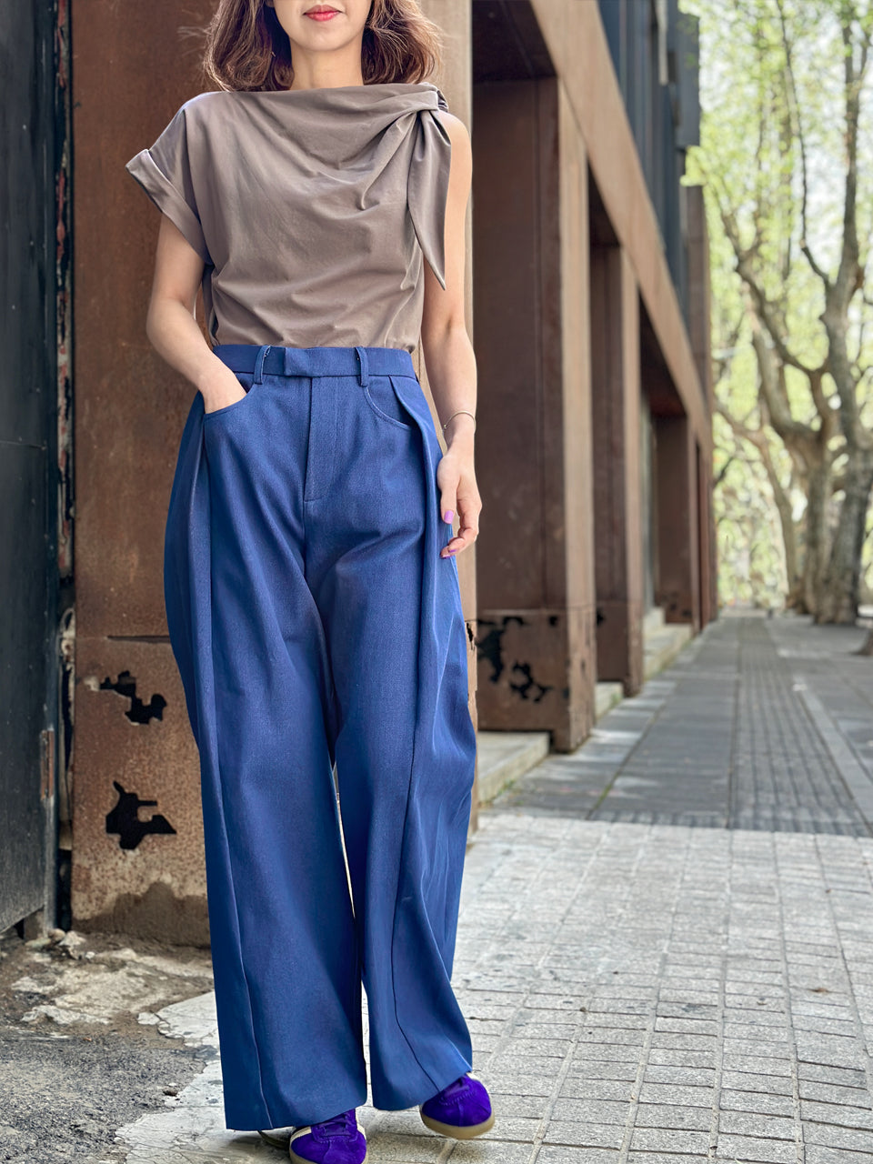 Versatile and oh-so-desirable, our asymmetric tee is your new dressing staple, but made better. If a cotton tee is of course a wardrobe essential, a detailed tee is even better to elevate your daily outfit with a touch of romantism in boat neck collar and couture like tie knot detail. Impeccably cut, slightly fitted but not too much, this new season tee is your new crush. Available in taupe and purple.