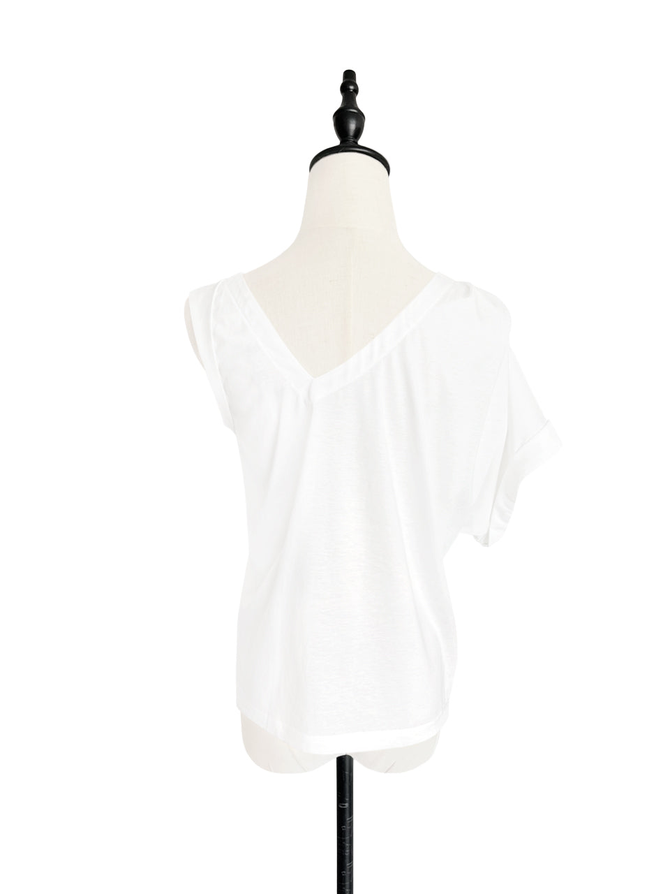 SPECIAL! White Asymmetric Neck Roll Sleeve Tee