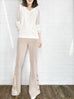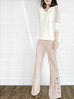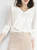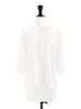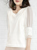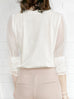 Because we know feeling comfortable is as important as looking chic, we've created this blouse with all the elegance of our signature elements, but in a soft jersey fabric. The 3/4 length sleeves, small puff sleeves and pearly buttons on lace trim make it feel special, but it's as easy to wear as a tee. Available in black and white.