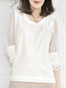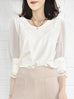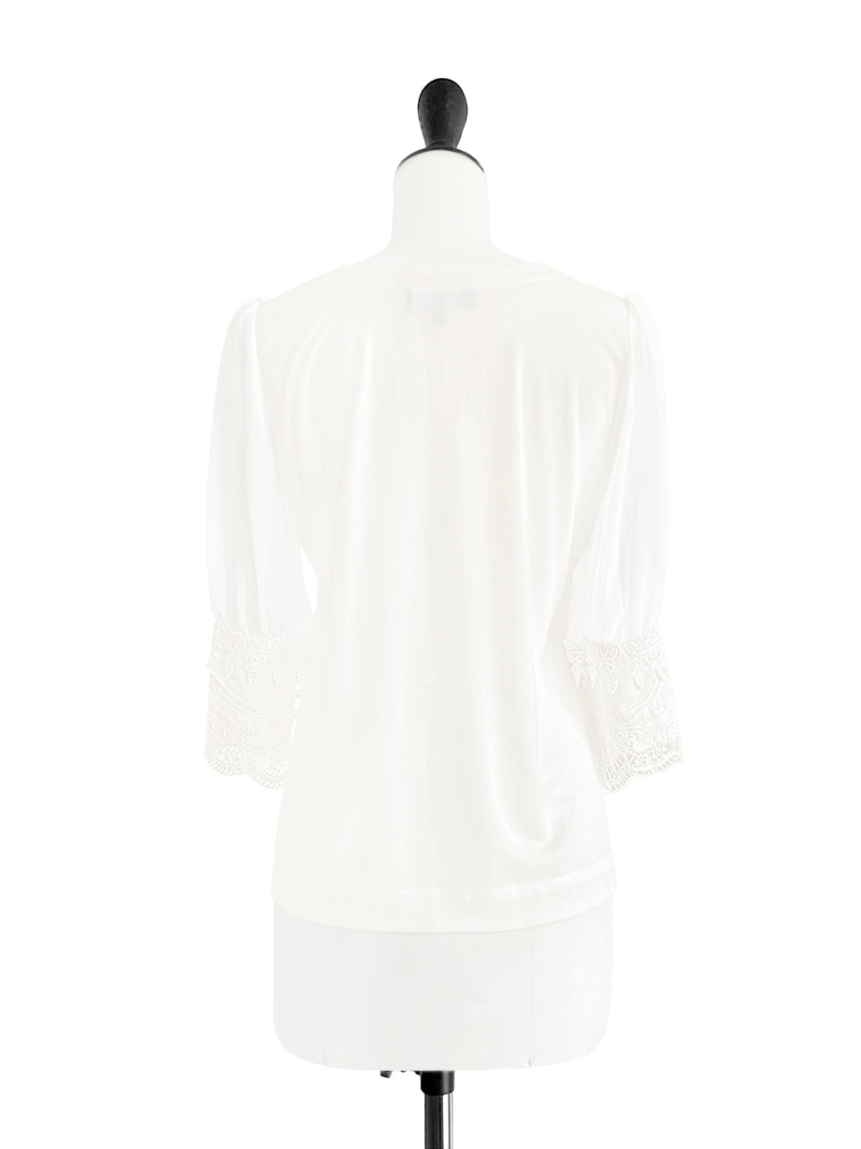 Final Sale! White Puff Mesh Sleeves Lace Cuff Jersey Top