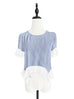 Surprise Sale! White Stripe Mix Detail Asymmetric Hem Ruffle Top