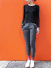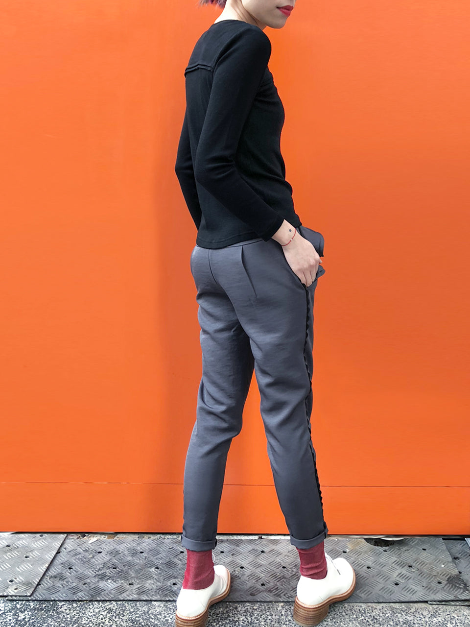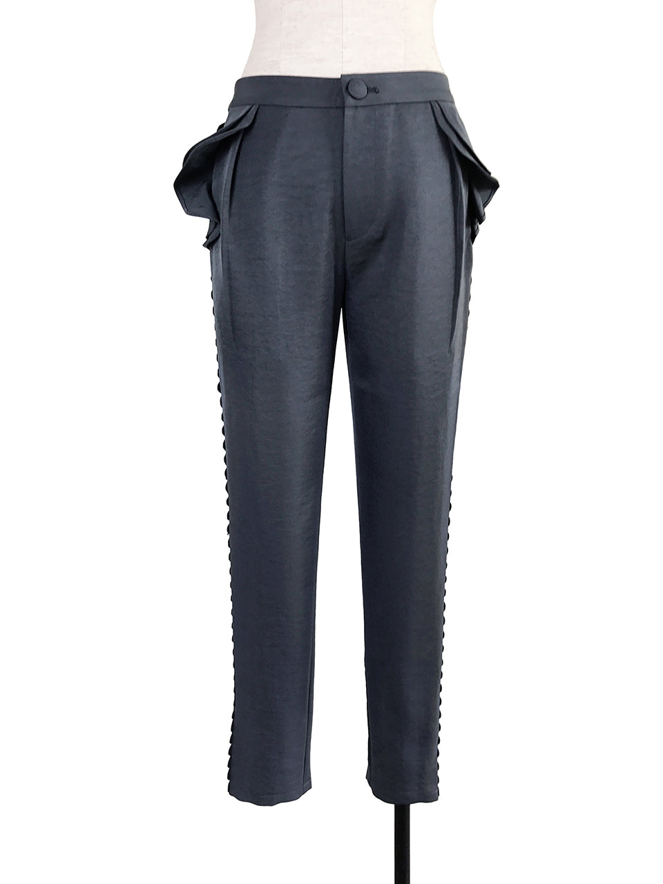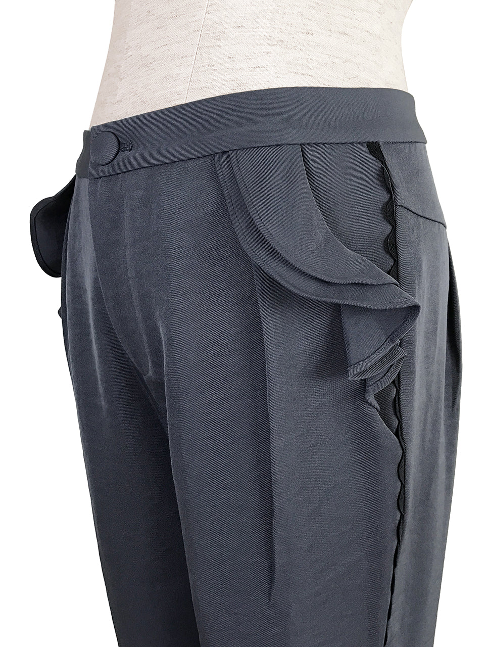 SPECIAL! Charcoal Ruffle Pocket Scallop Side Trim Trousers