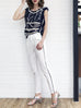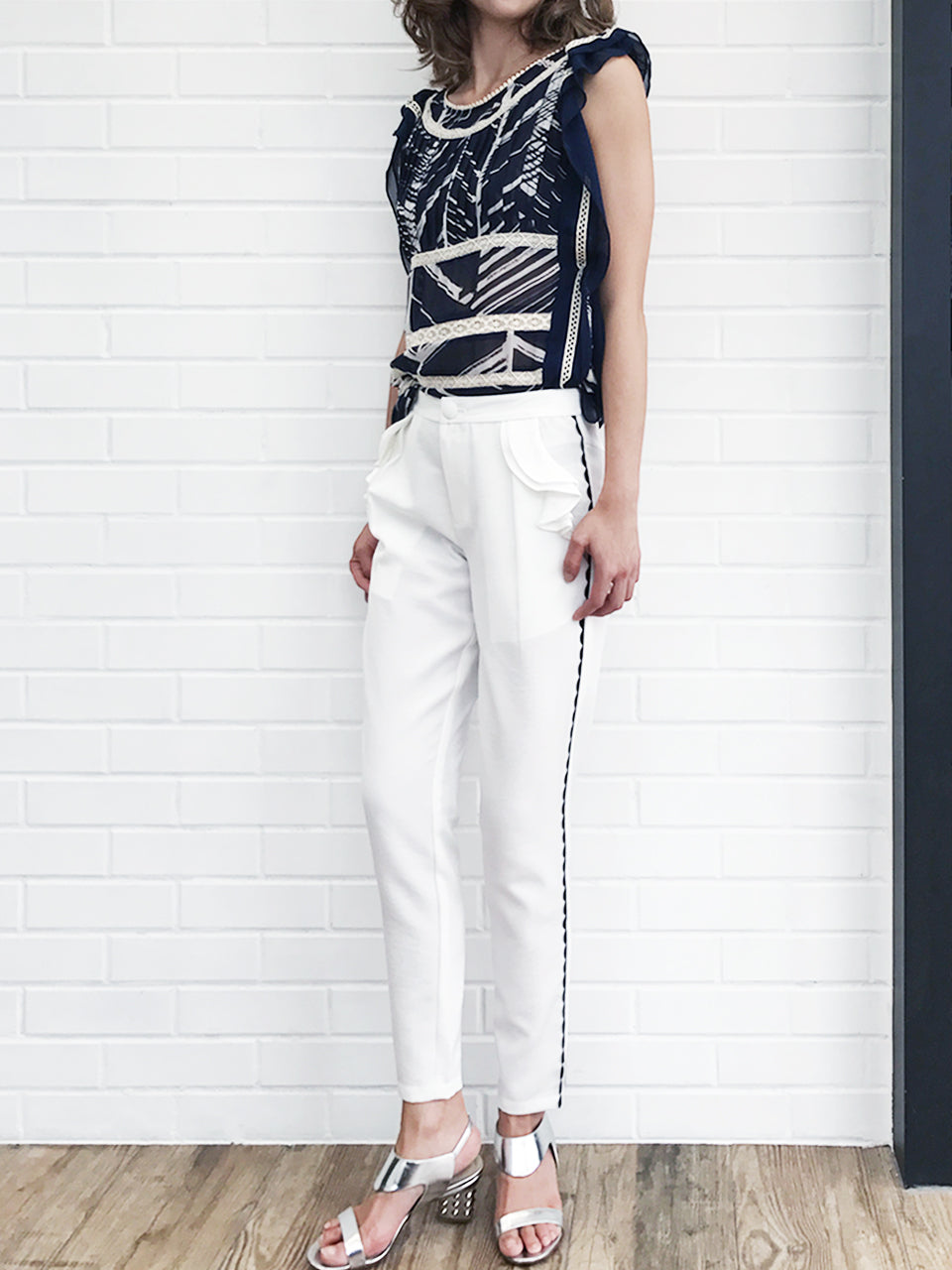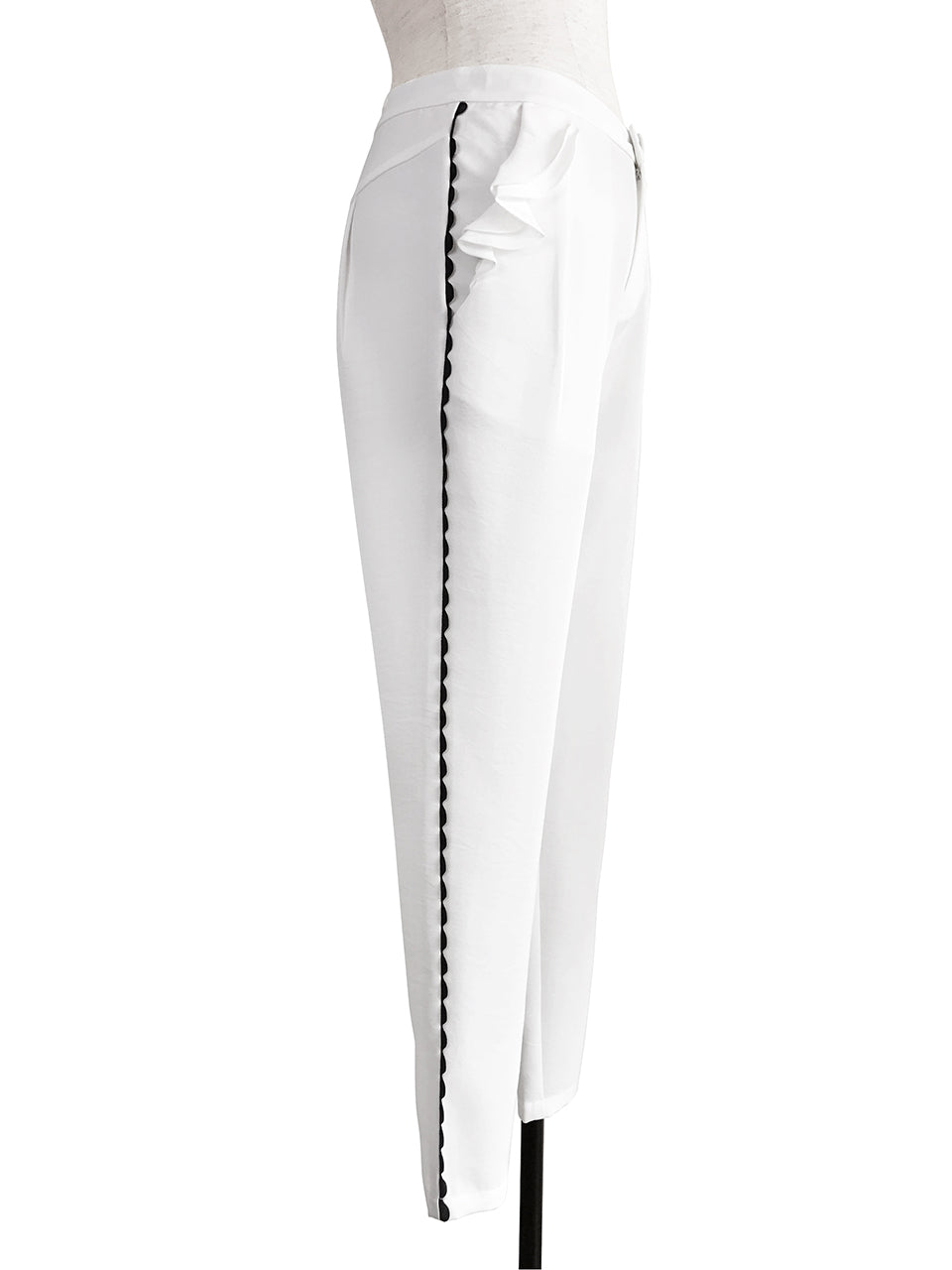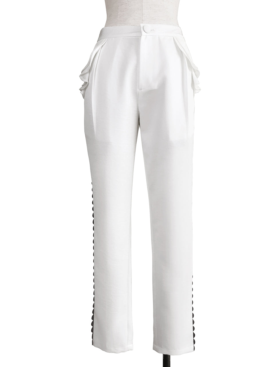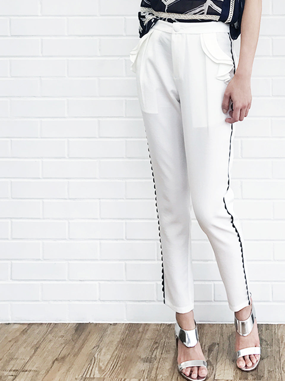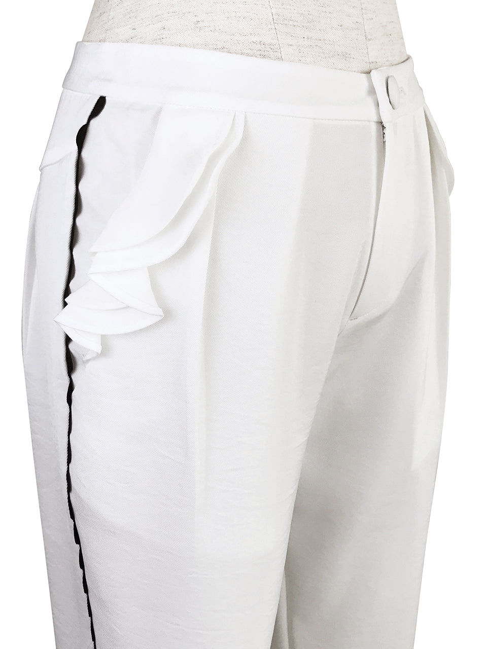 SPECIAL! White Ruffle Pocket Scallop Side Trim Trousers