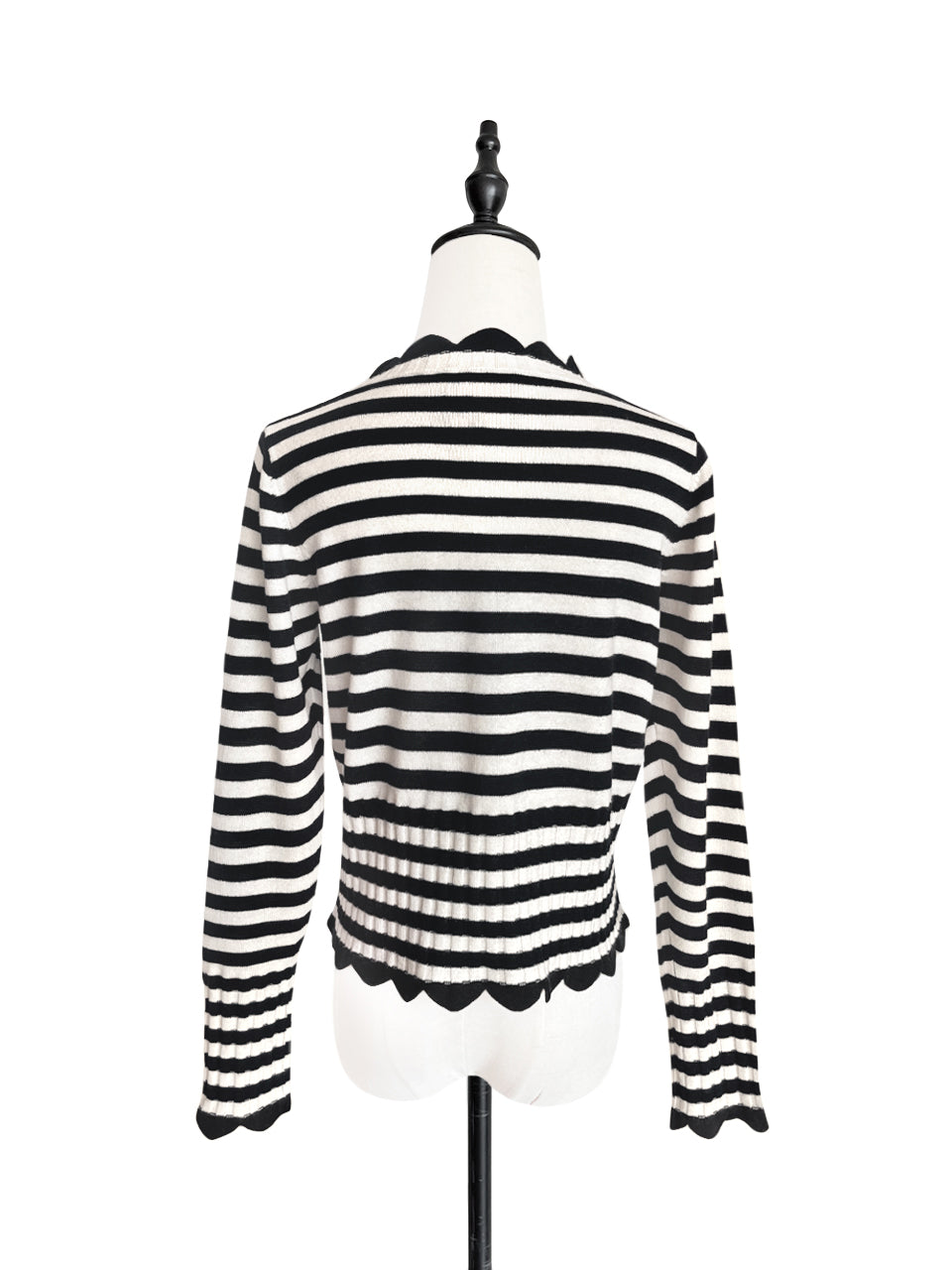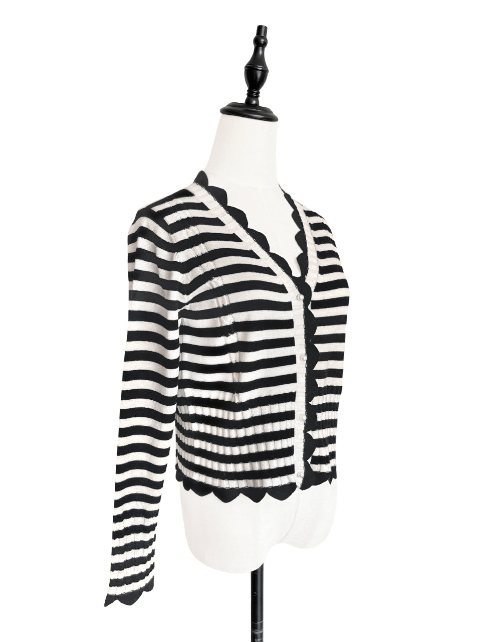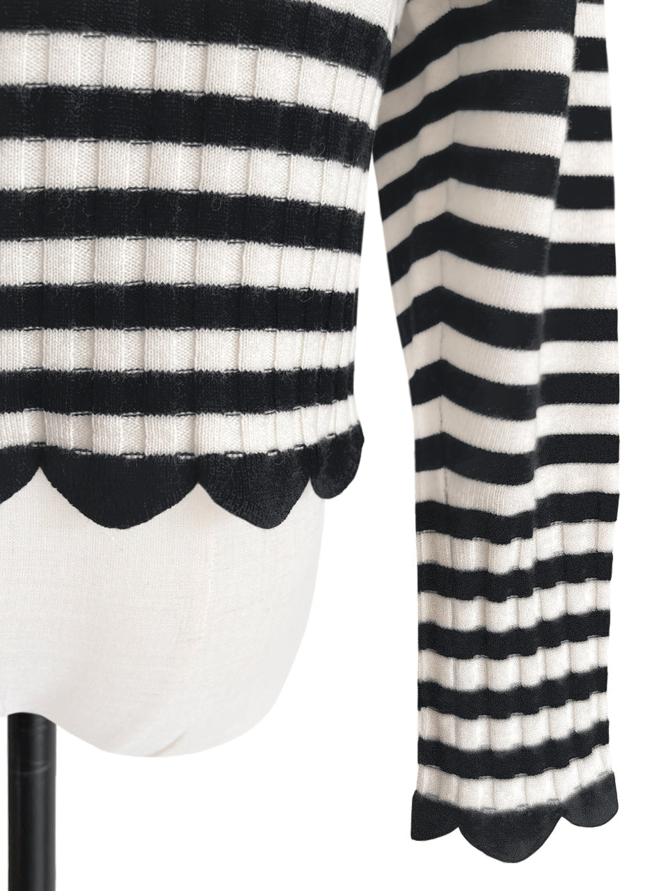Surprise Sale! Mono Stripe Scalloped Cashmere & Wool Cropped Cardigan
