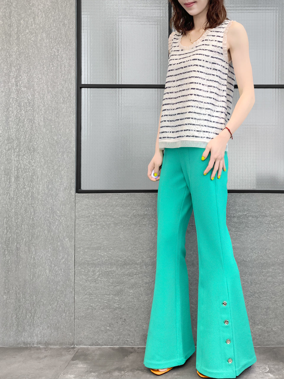 Surprise Sale! Mint Green Flare Leg Pull On Button Pants