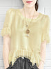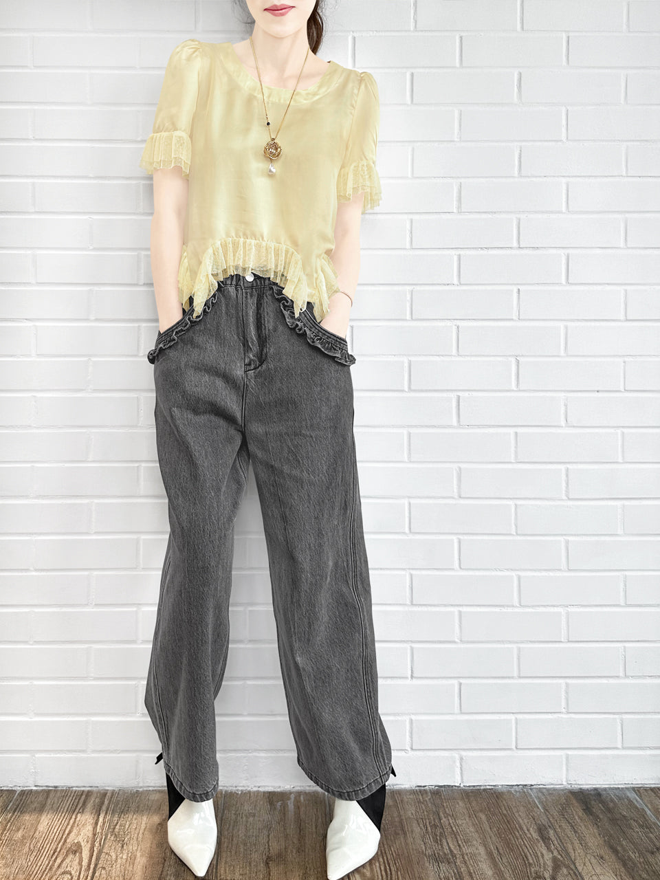 Last Chance! Tonal Yellow Mix Detail Asymmetric Hem Ruffle Top