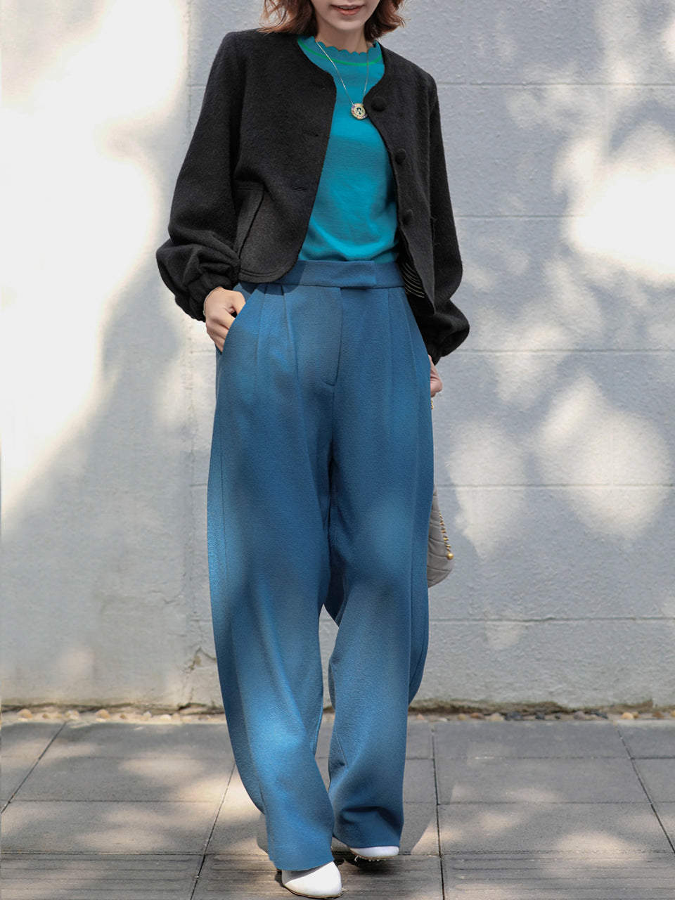 Last Chance! Vintage Blue Wide Leg Luxury Fine Wool Trousers