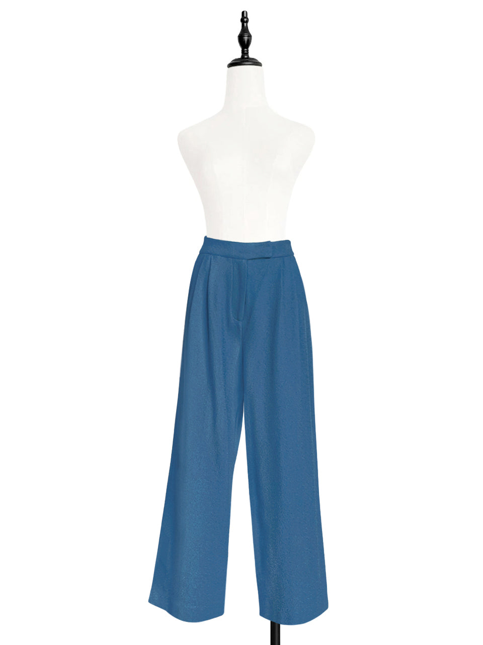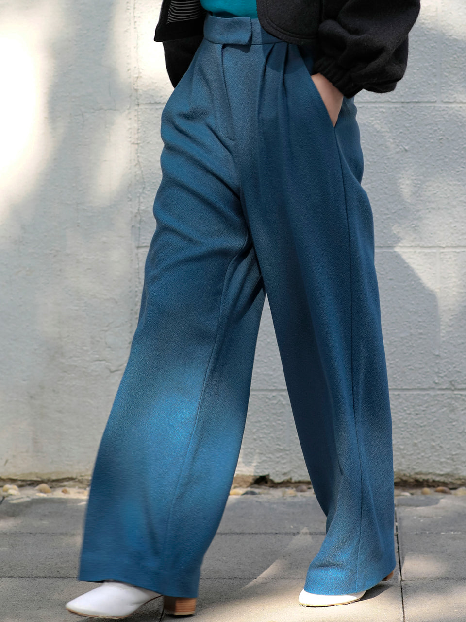 Wide-leg trousers give a louche, laid-back vibe to your office or even party look, which somehow makes it instantly cooler. These lovely pairs tailored in 100% pure fine wool, not a thick one but perfectly for the coming weather. She has a pleat from the waistband, two side pockets and back welt pocket. We knew you all are blue lovers so we prepared two shades in vintage blue and dark navy.