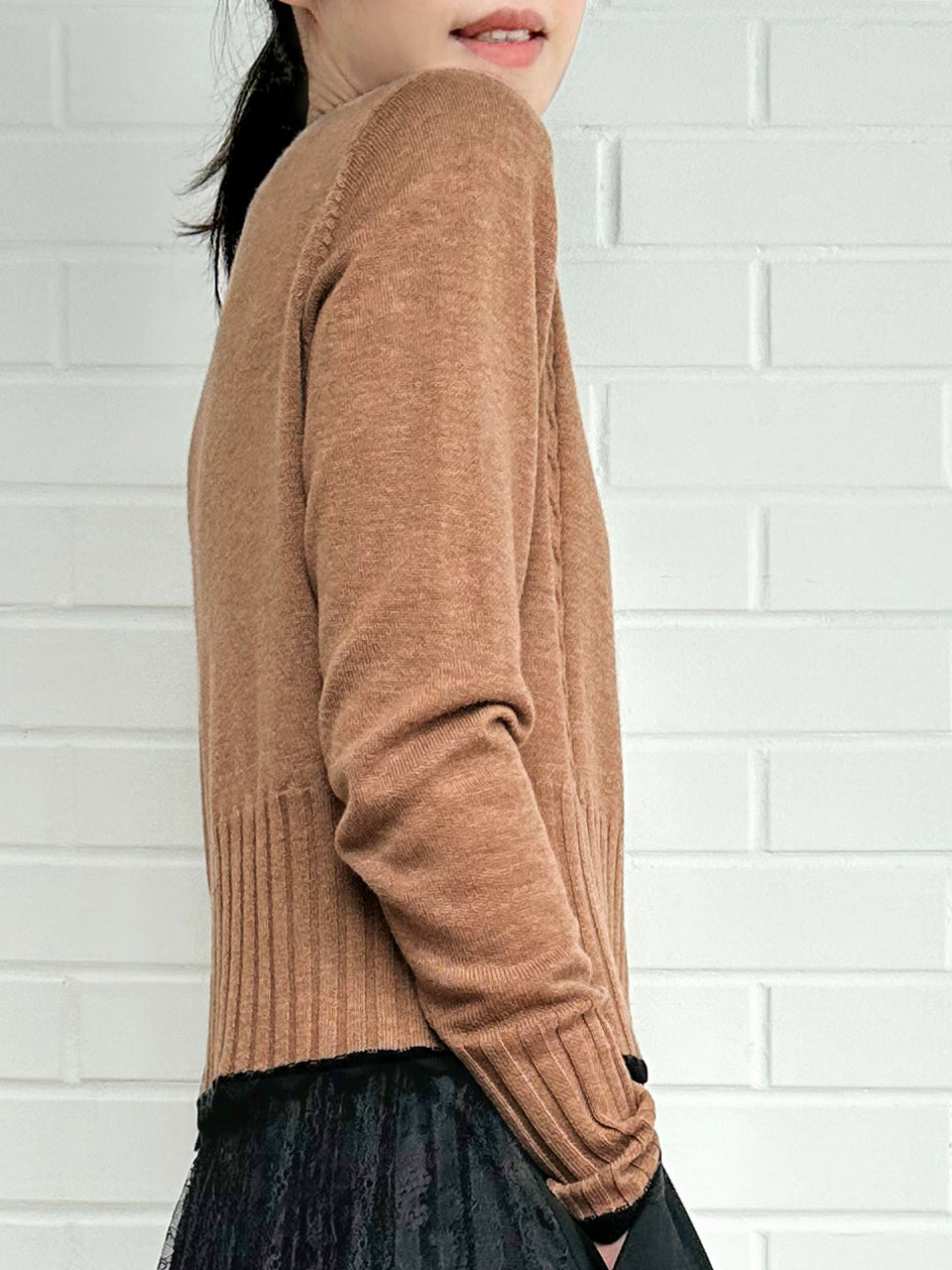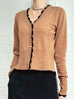 Surprise Sale! Beige Contrast Scallop Trim Cashmere & Wool Cropped Cardigan