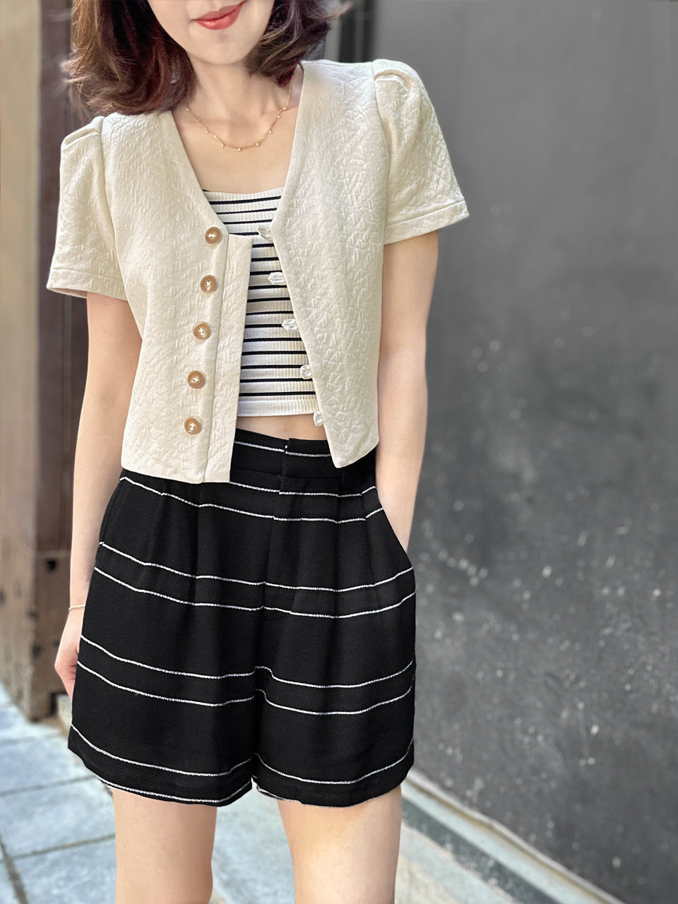 Refinement at its best, the timeless  little crop jacket is inspired from fashion icons of the 60's and 70's. Every detail has been carefully designed, from the fit to the fabric and slightly puffed shoulder. We love the neat cut and tortoise shell buttons which are classic and glam Jackie Kennedy style.