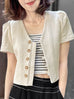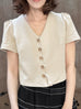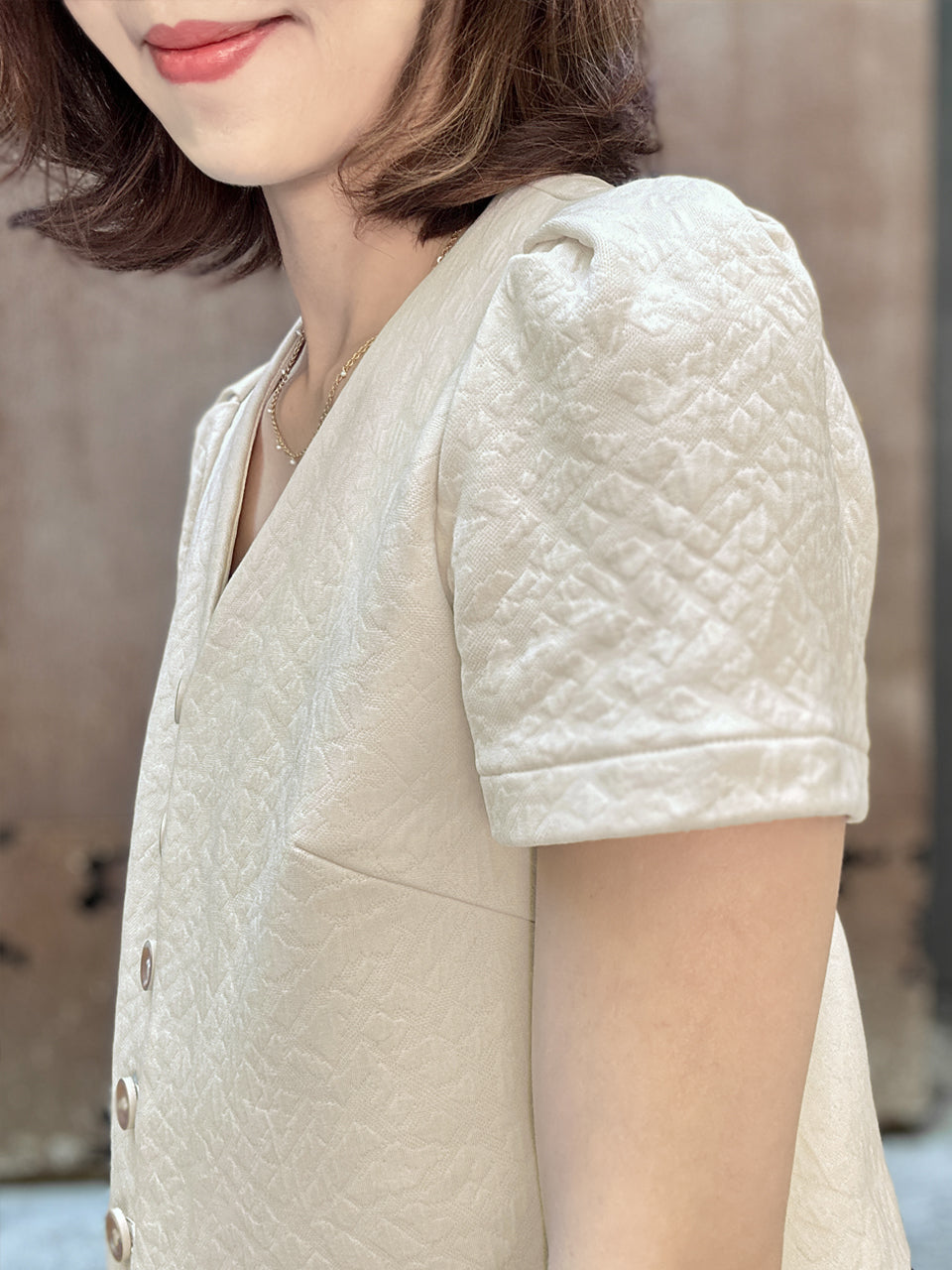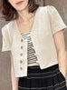 Surprise Sale! Beige Puff Shoulder V-neck Little Crop Quilted Jacket