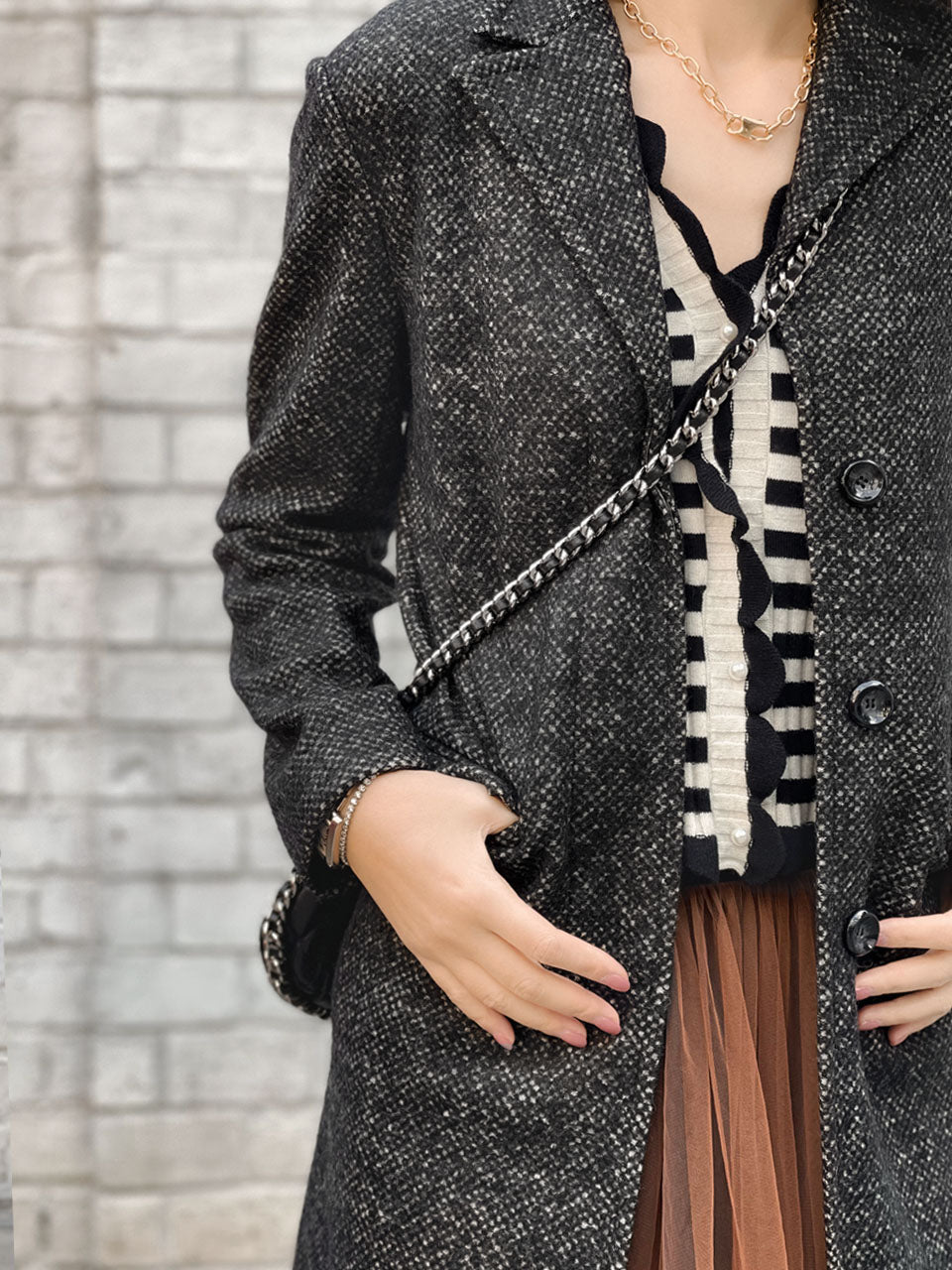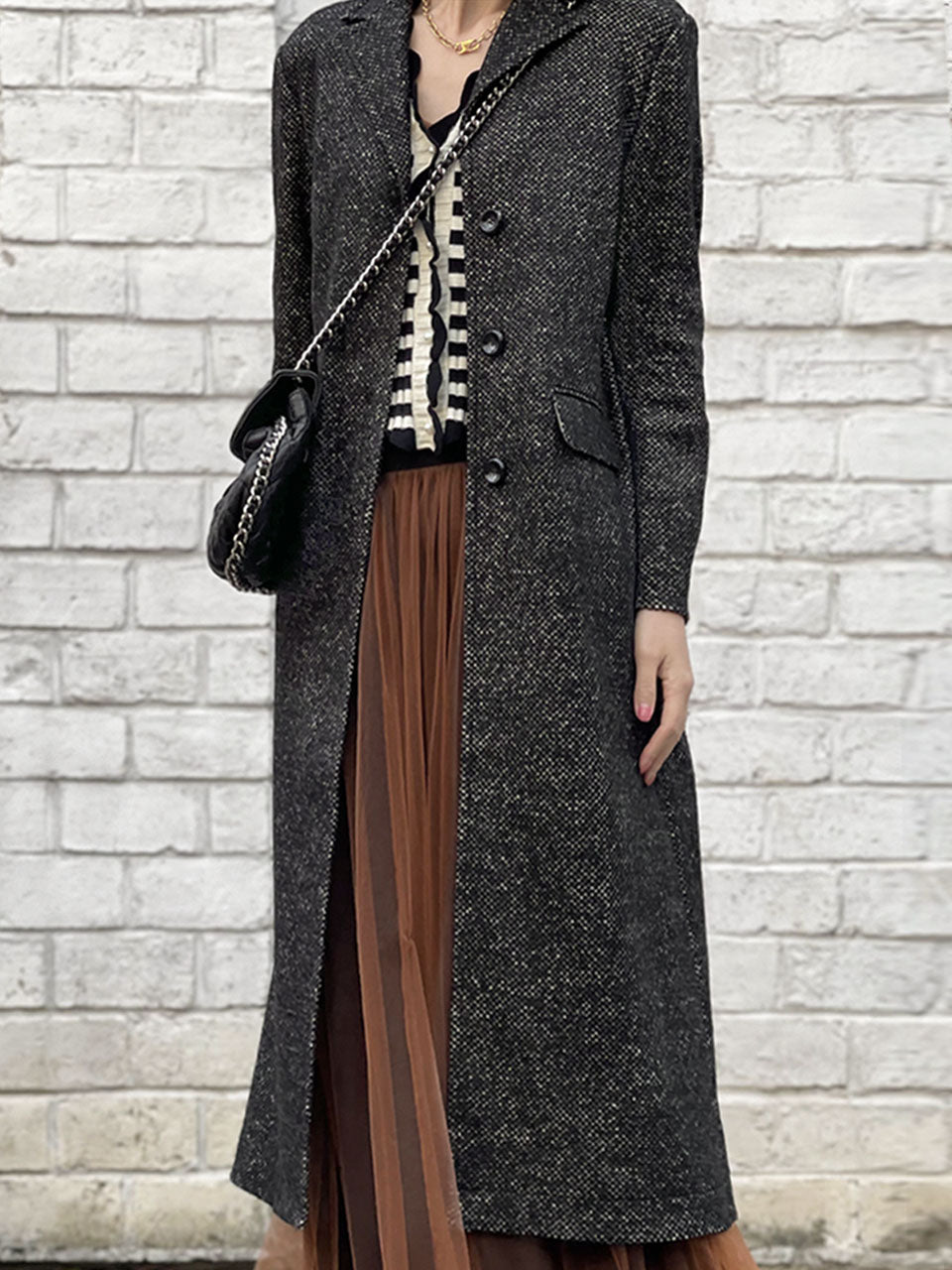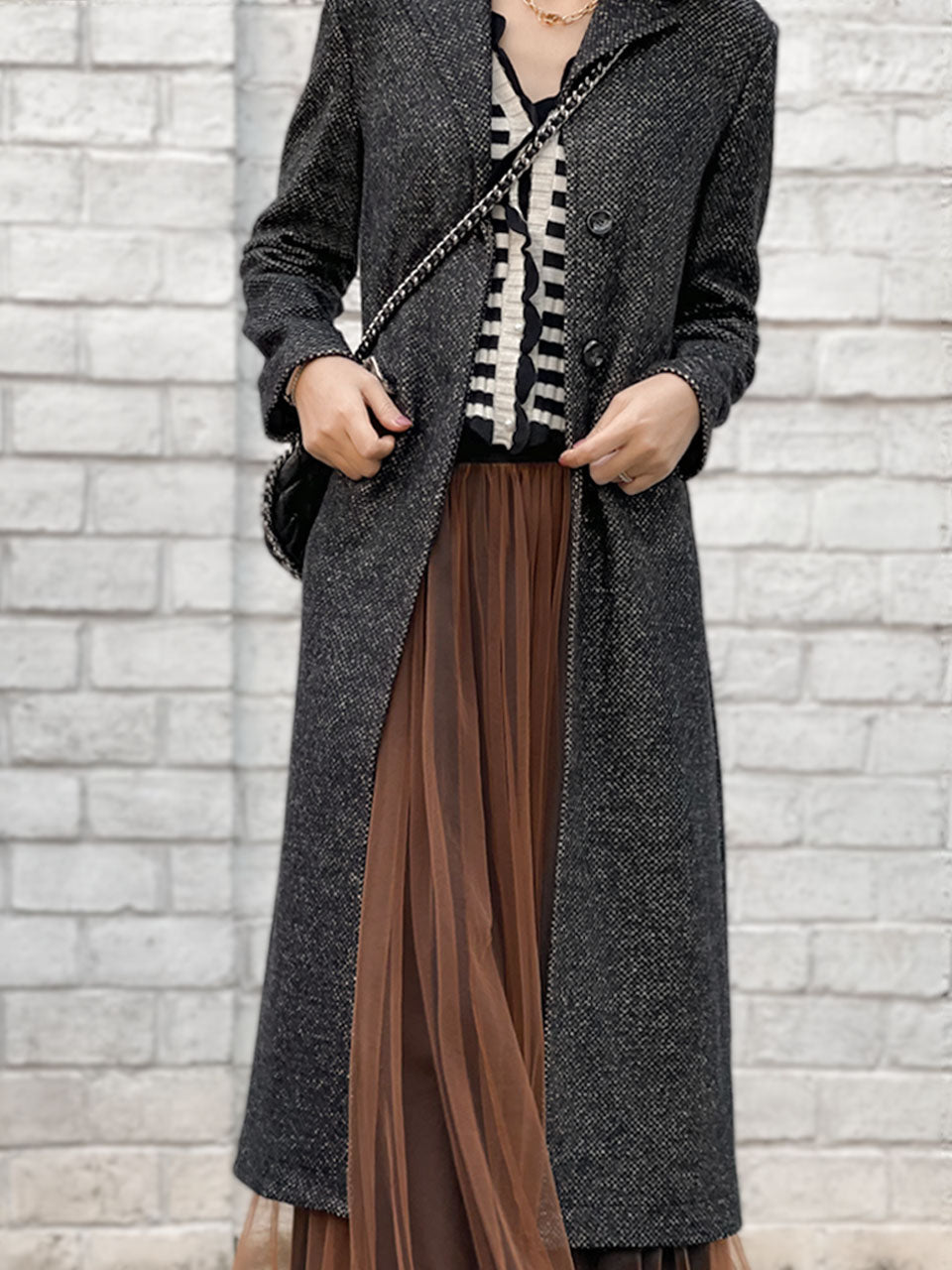 Surprise Sale! Black & Beige Barleycorn Wool Crombie Coat