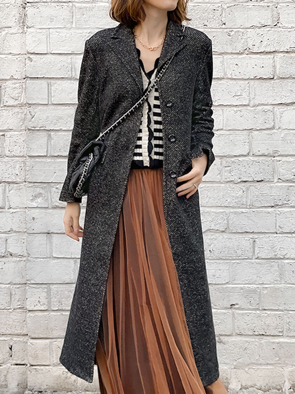 This single breasted coat is classically tailored with 100% barleycorn wool in a super clean shape - cut to hit just below the knee (perfect with midi dresses as well as trousers), in a beautiful slim shape, with tortoise shell buttons hidden inside lined placket, flap pockets and slightly elastic.