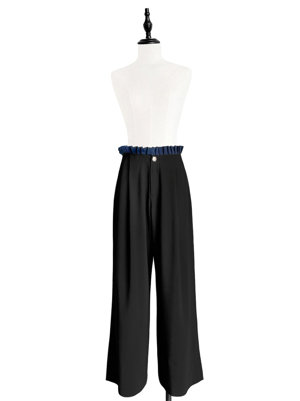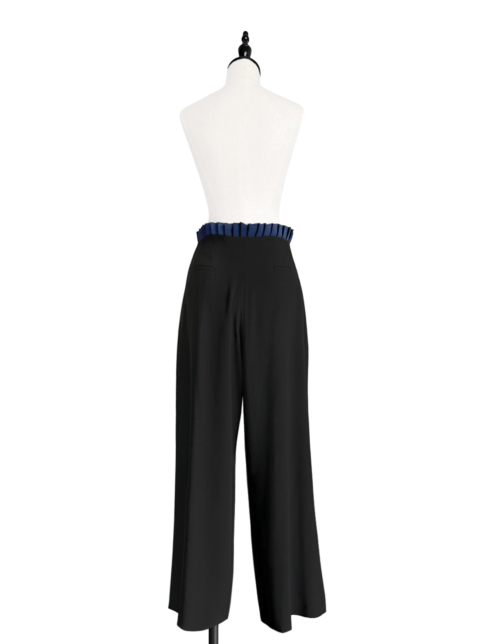 Final Sale! Black/ Navy Contrast Pleated Waist Airy Wide Leg Trousers