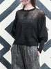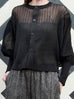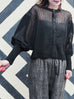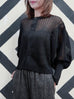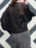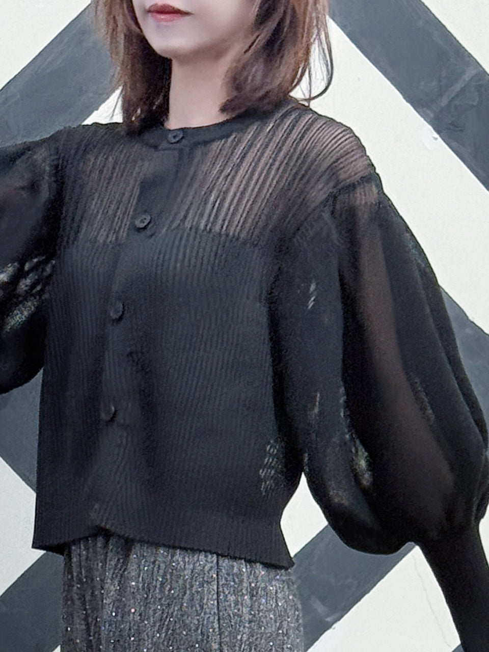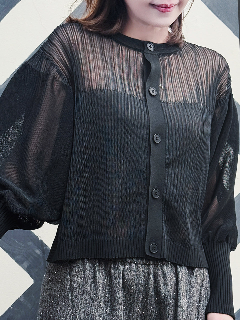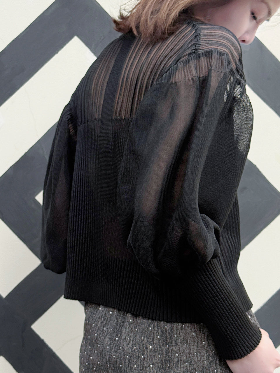 Black Organza Balloon Sleeves Pleated Yoke Knitted Cardigan