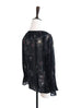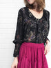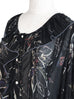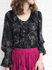 Last Chance! Black Print Ruffle Collar Pleats Panel Blouse