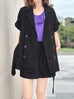 Surprise Sale! Black Tonal Trimmed Pure Linen Short Sleeves Blazer