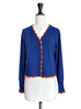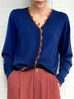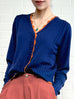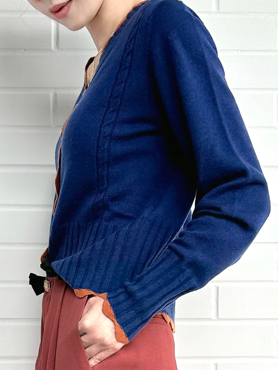 Surprise Sale! Blue Contrast Scallop Trim Cashmere & Wool Cropped Cardigan